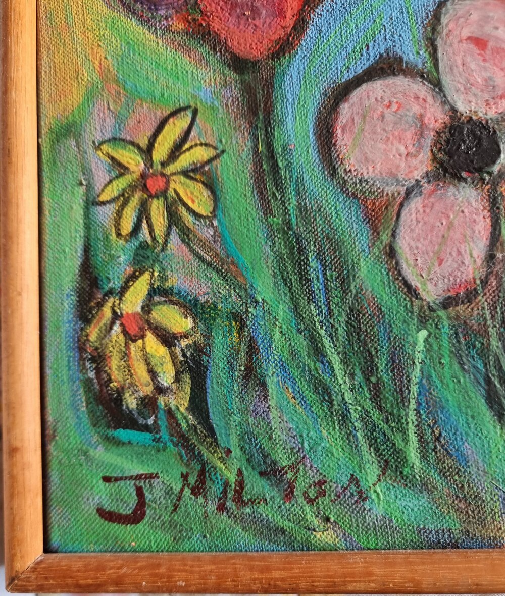Oil on Canvas – A Vase of Flowers. signed J.Milton