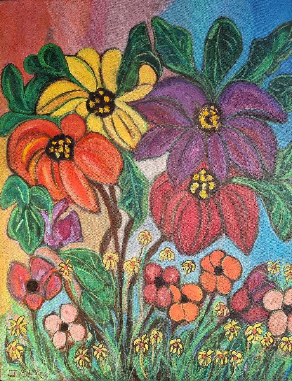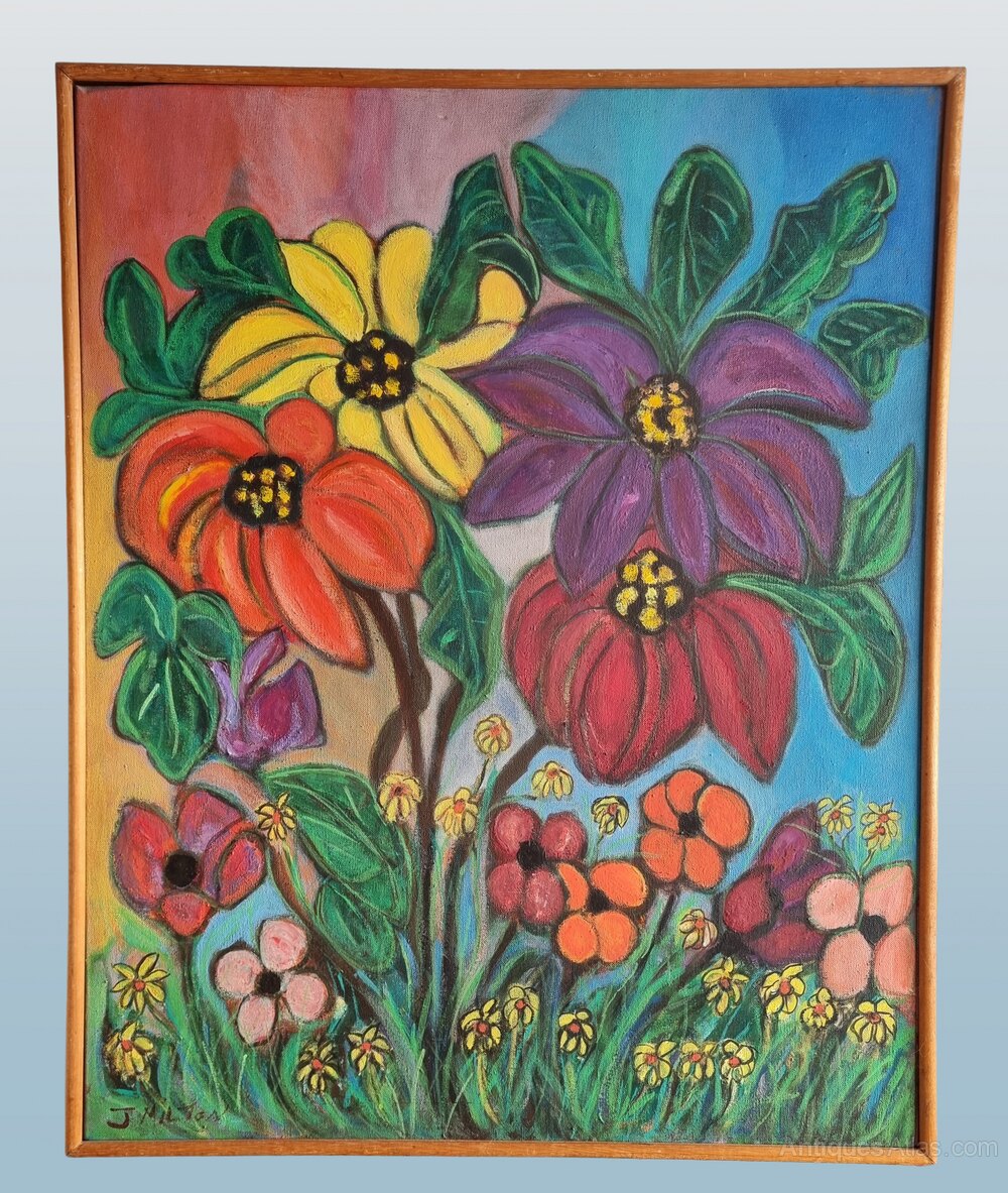 A typical modern oil painting from the 1960’s, wonderful colours and signed by the artist – J.Milton.