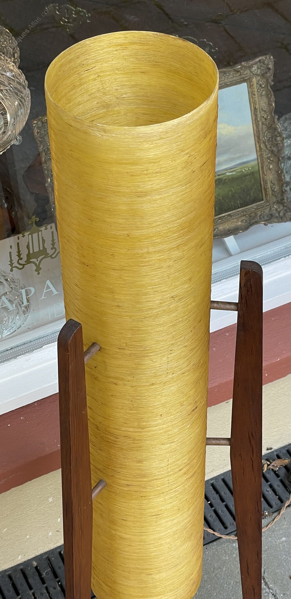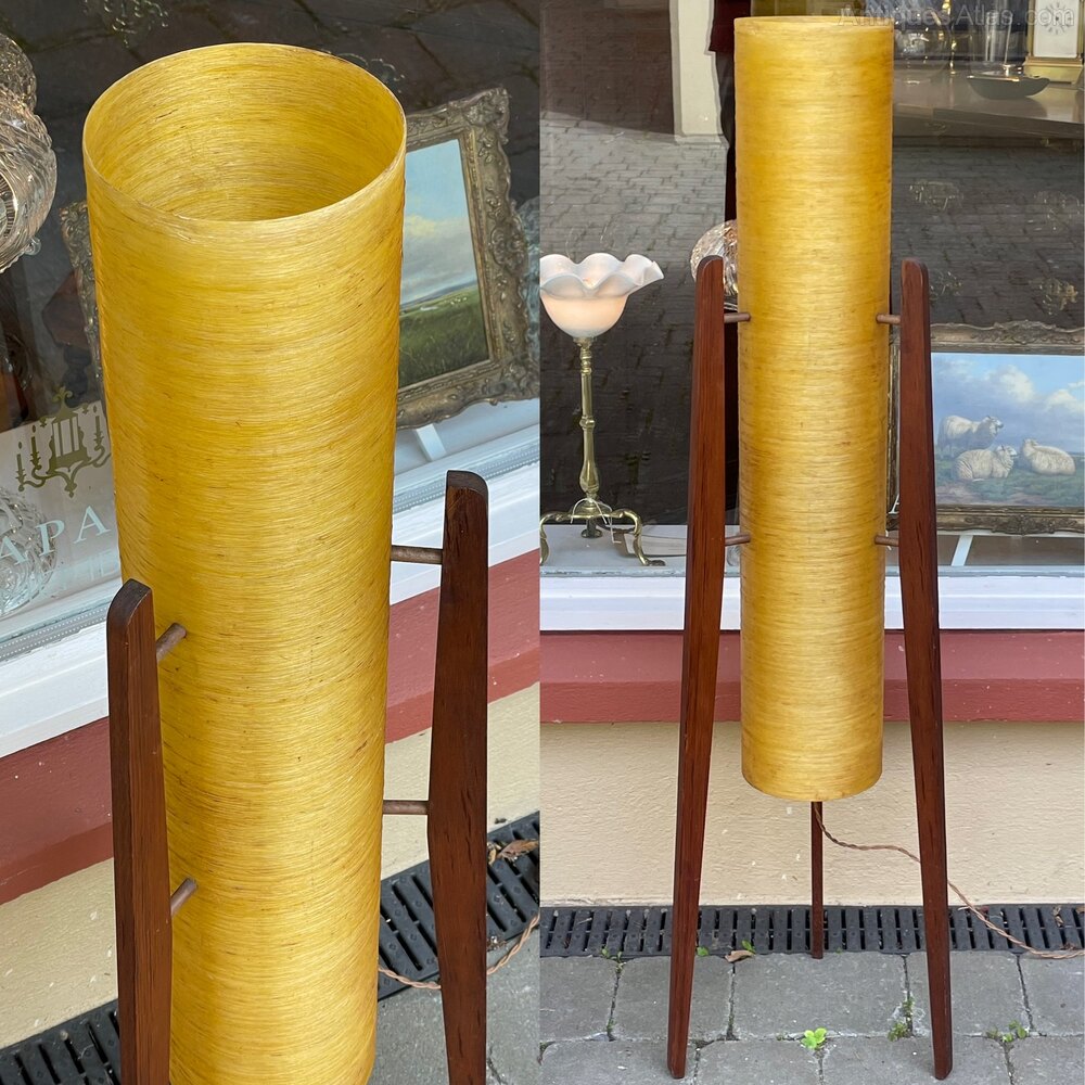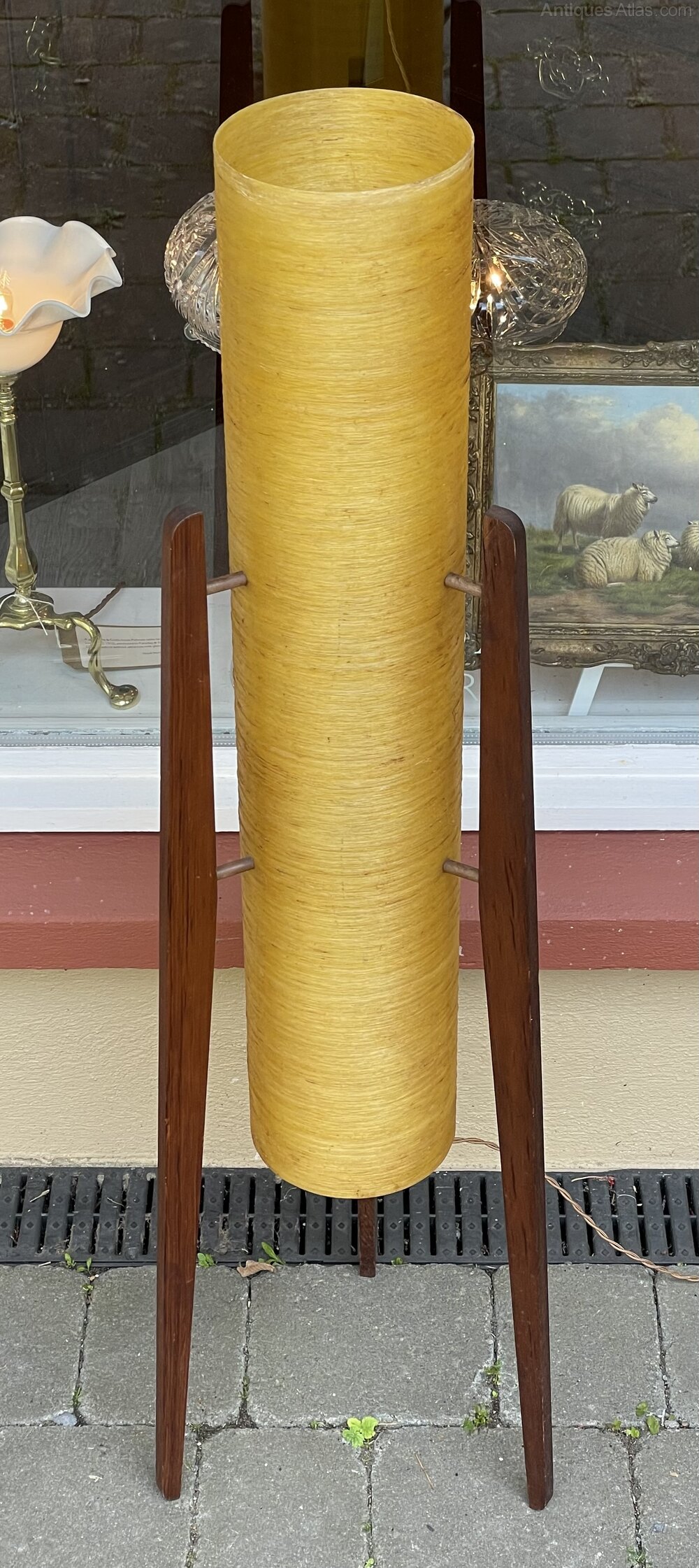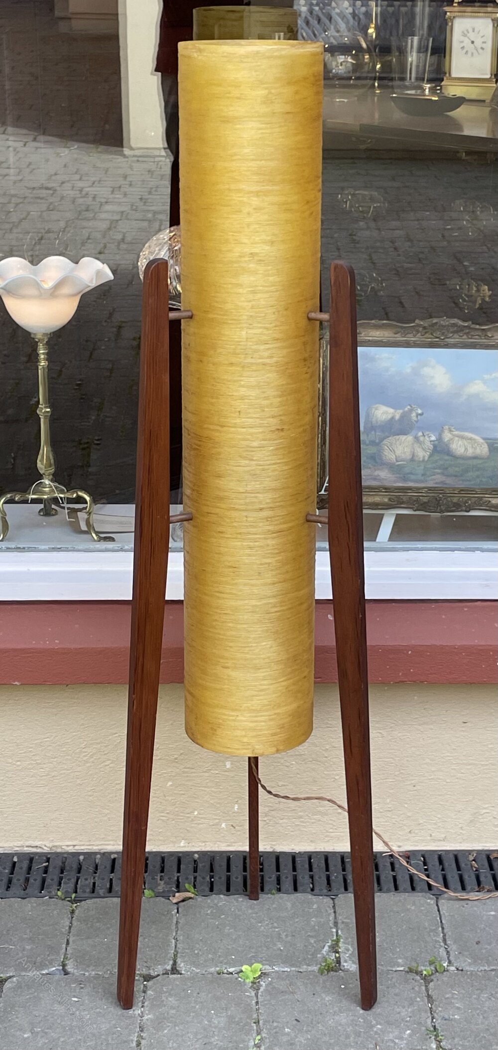 Orange Fibreglass Rocket Lamp on Teak Tripod Base