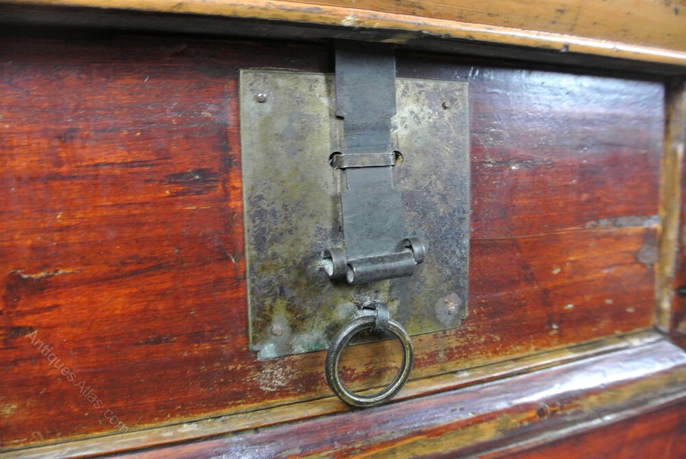 Original Chinese Elm and Bronze Lowboy Altar Table
