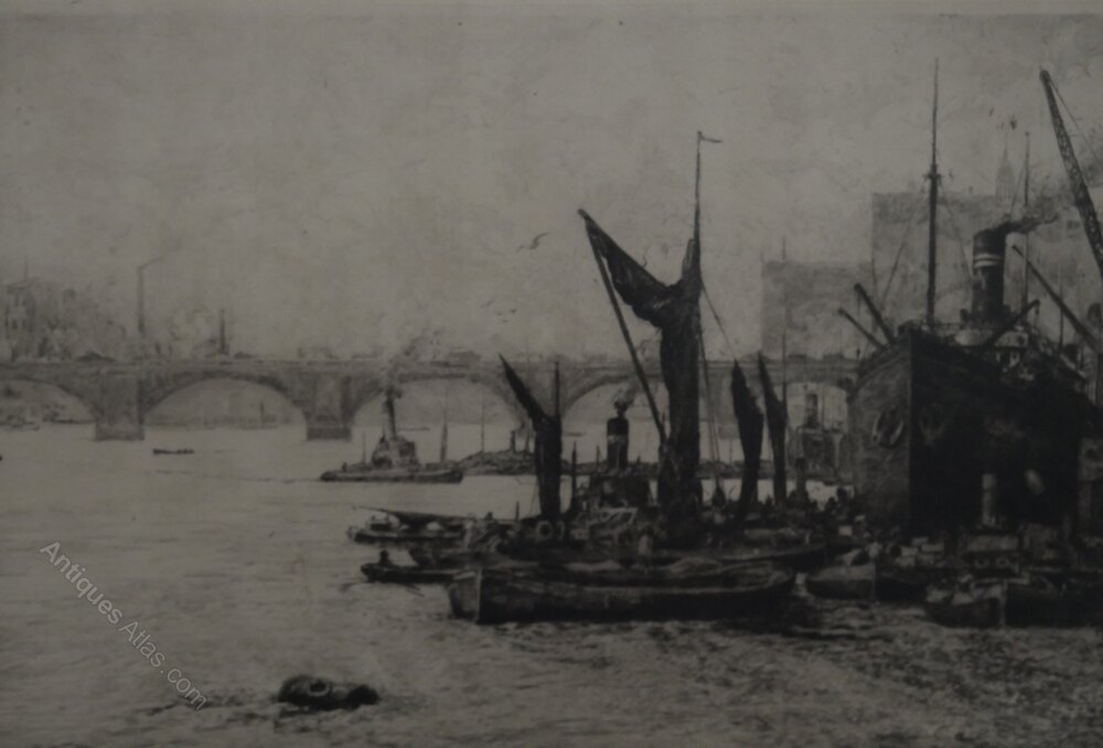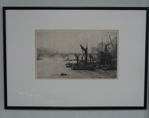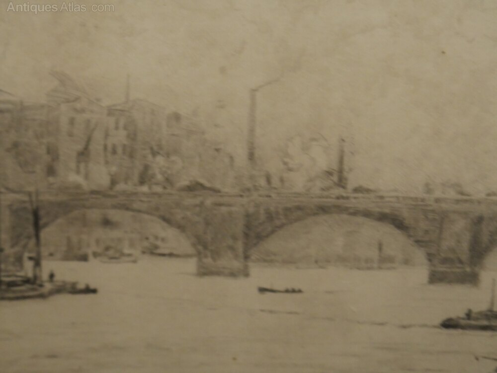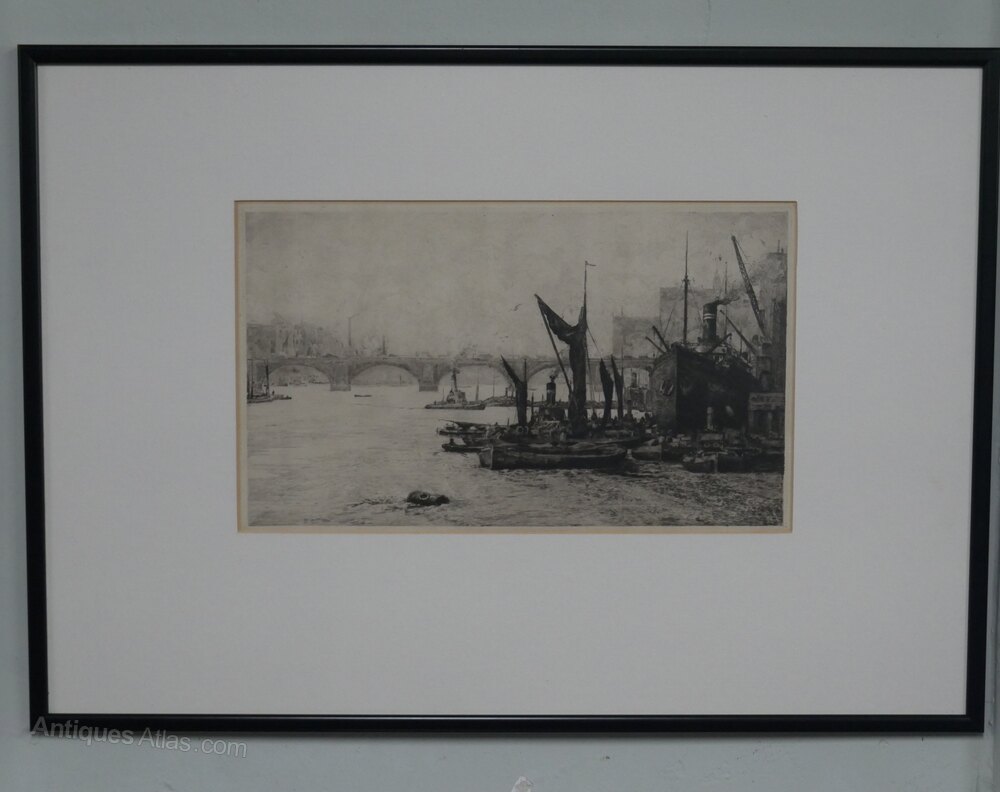 Original London Bridge Etching by Henry G. Walker