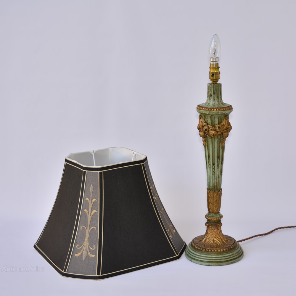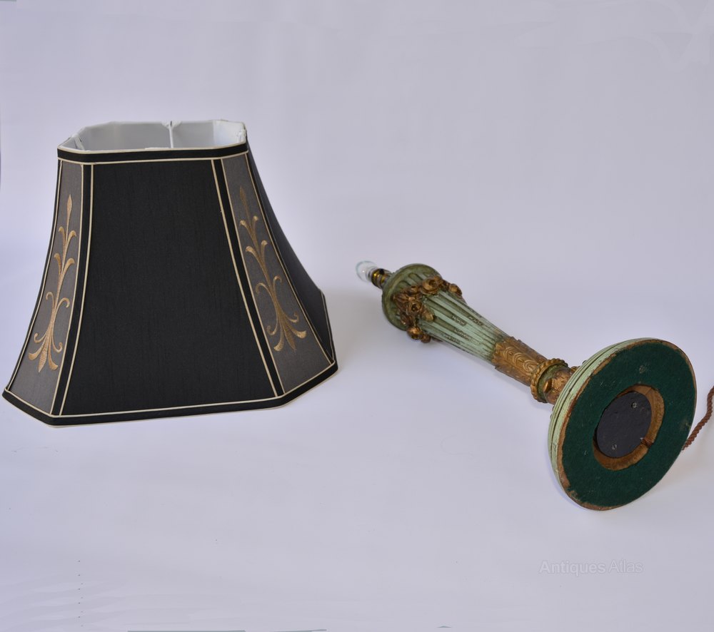 19th C.Gothic Brass Candlestick Table Lamp & Shade