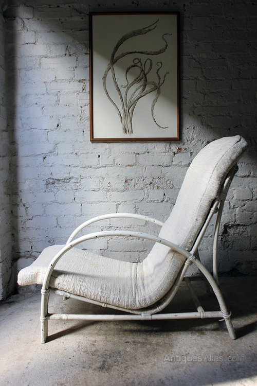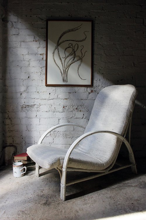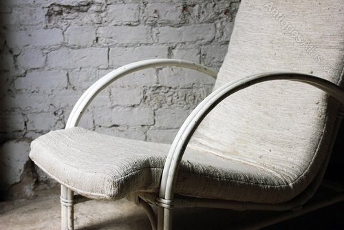 We can find an advertising entry in 1938, which shows this exact model in a cream painted finish, and it was described as a ‘cream cane chair finished with special weather-resisting lacquer with detachable roll-type cushion’.