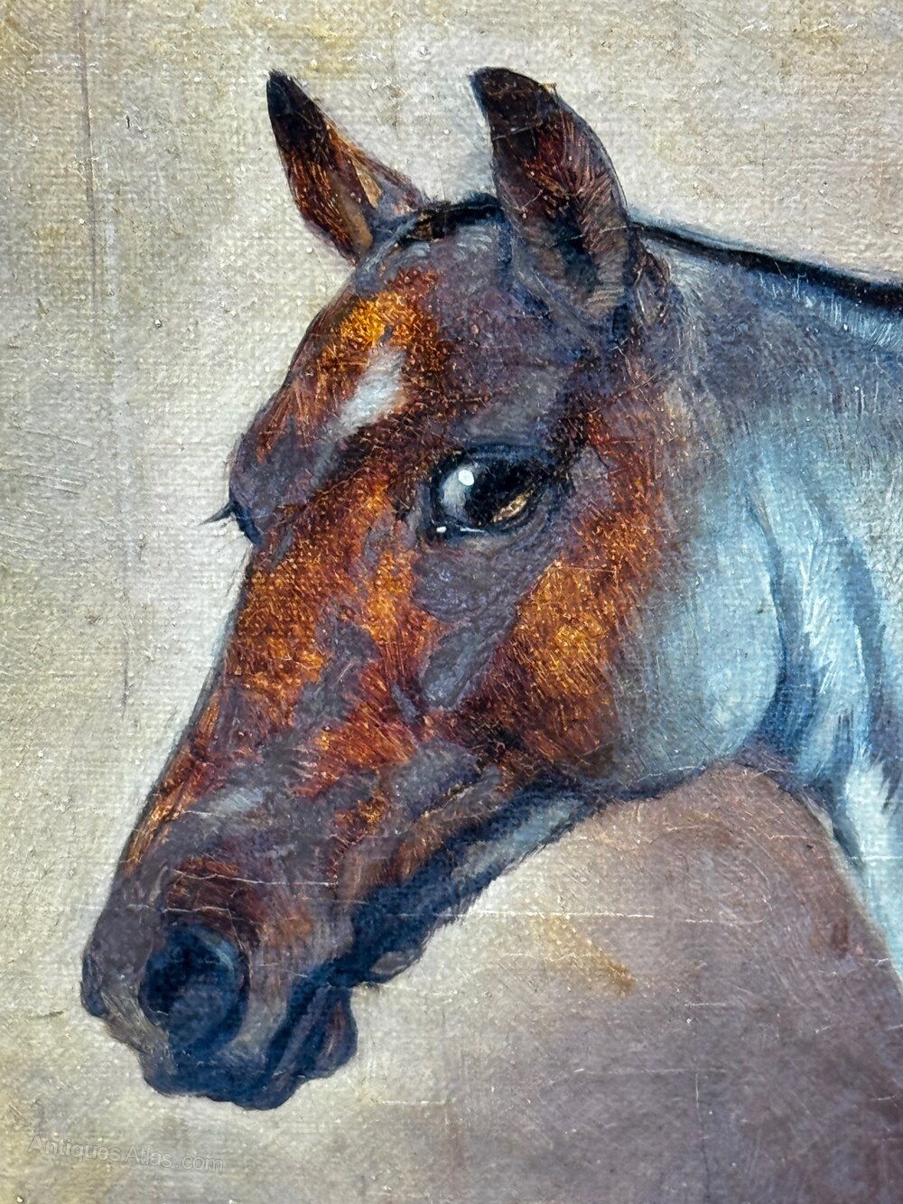 This work represents a compelling example of late Victorian equestrian painting, uniting rarity of equine coloration, narrative intimacy, and refined atmospheric execution. Its strong stylistic association with John Sargeant Noble, supported by provenance, exhibition inclusion, and expert conservation, makes it an engaging acquisition for collectors of British sporting and animal portraiture. We offer our clients 100% satisfaction guarantee with all of our fine art, antiques & collectibles!