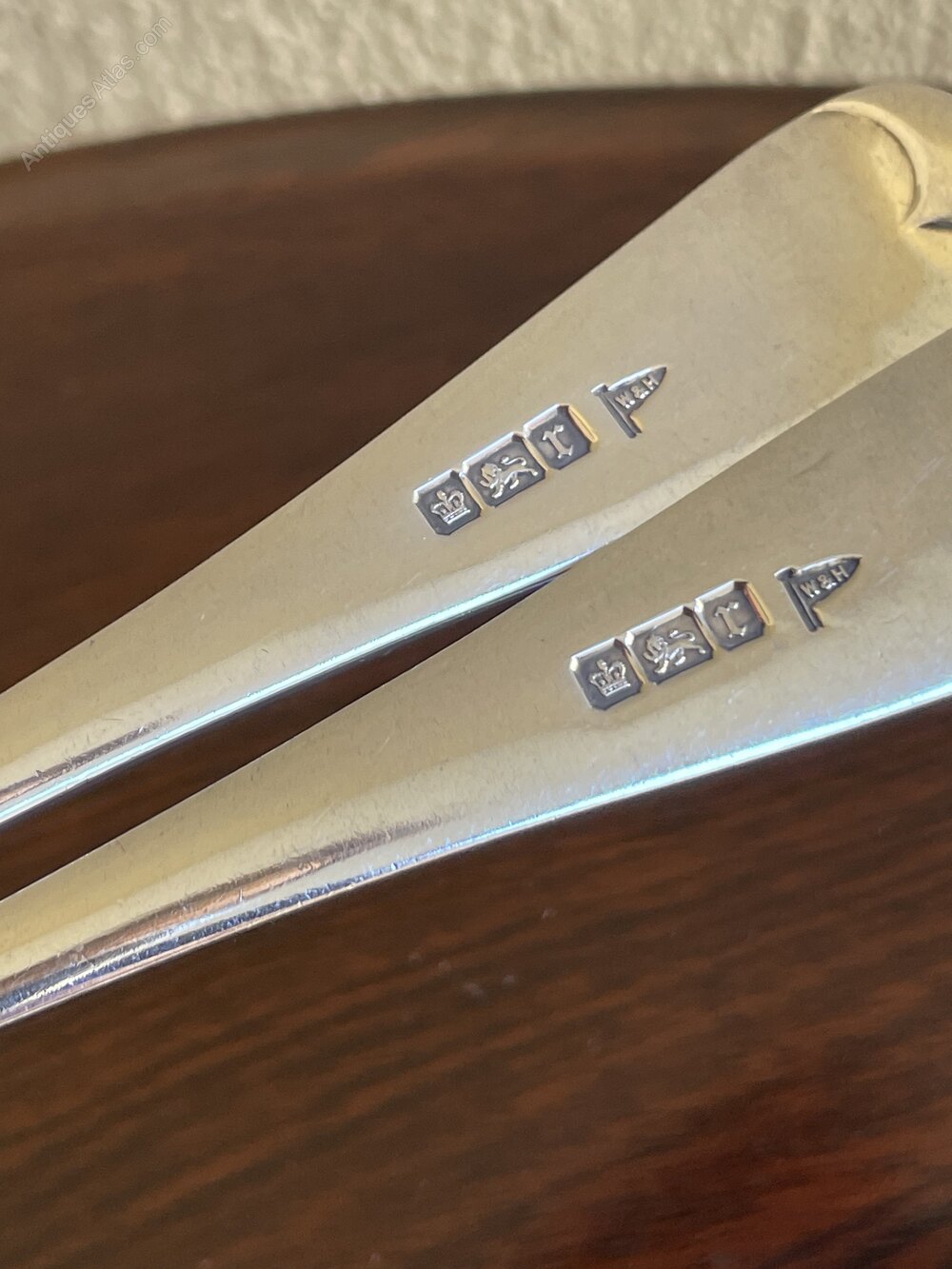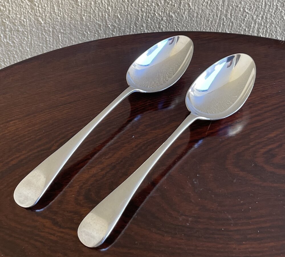 Pair Edwardian Silver Table Spoons Walker & Hall