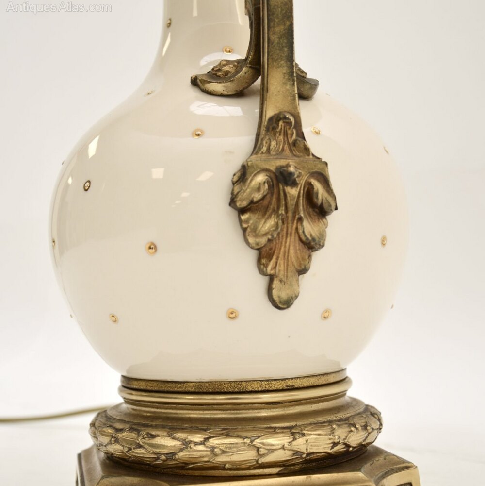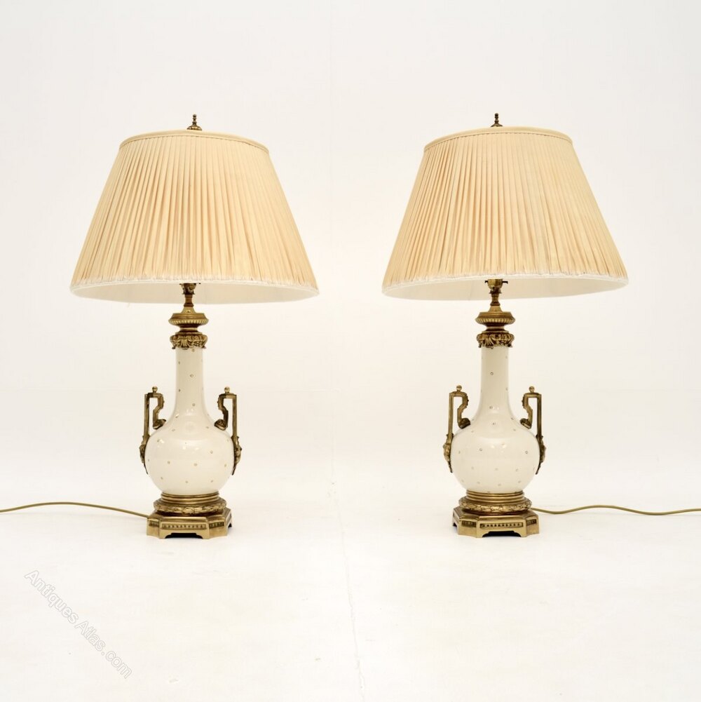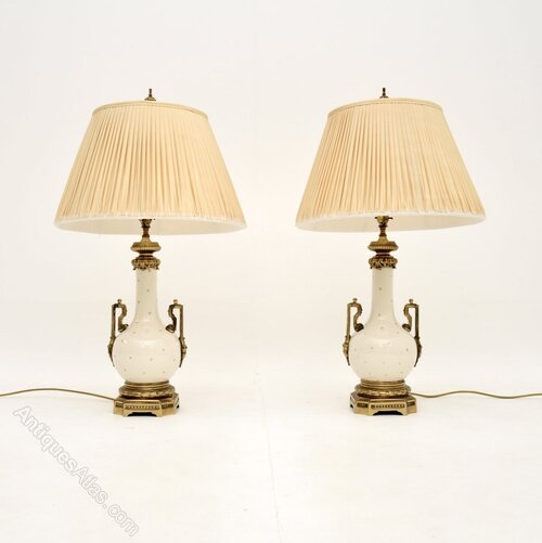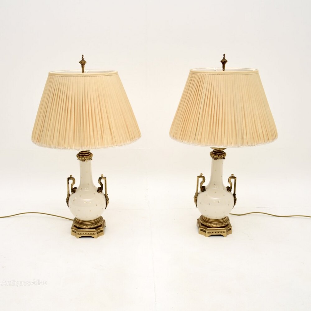 A stunning pair of antique French ceramic and gilt metal table lamps. They were made in France, they date from around the 1950’s.