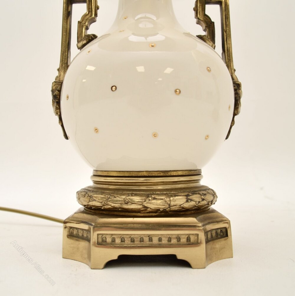 They are of superb quality and are an impressive size. The ceramic has a lovely cream finish with gold embellishment, the gilt metal has wonderful intricate details.