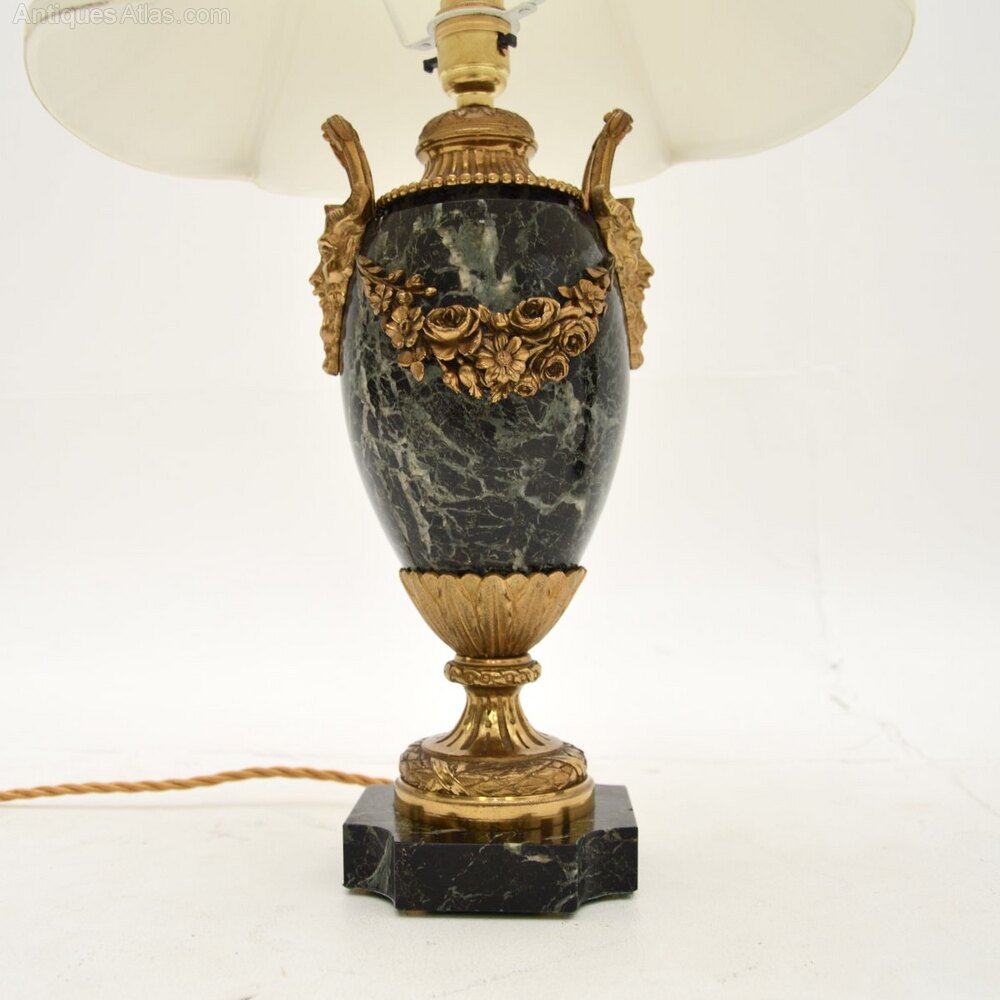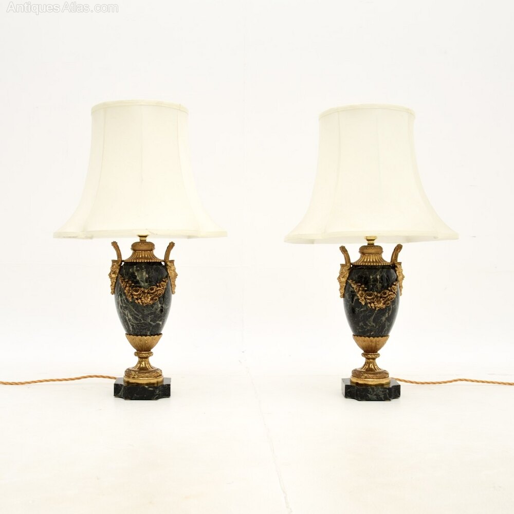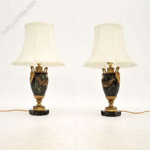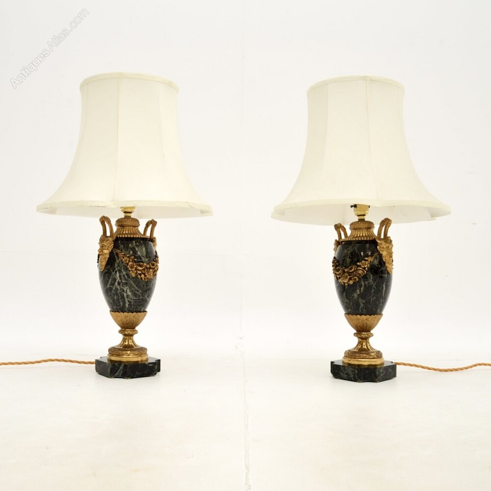 Pair of Antique French Marble & Gilt Bronze Lamps