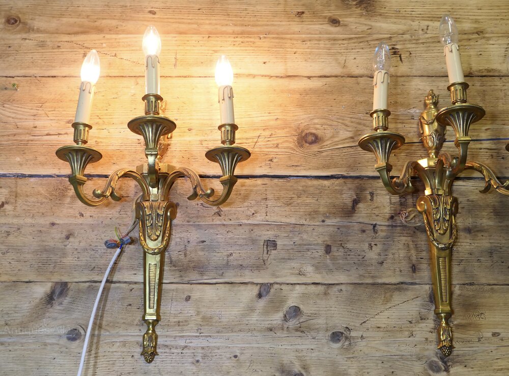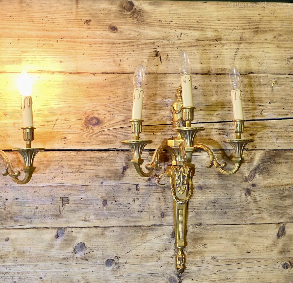 A Large Fine Quality Pair of French Neo Classical Brass Wall Lights