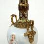 The central porcelain body depicts a romantic scene featuring a woman playing with a cherub.