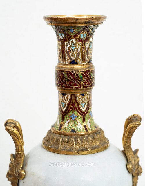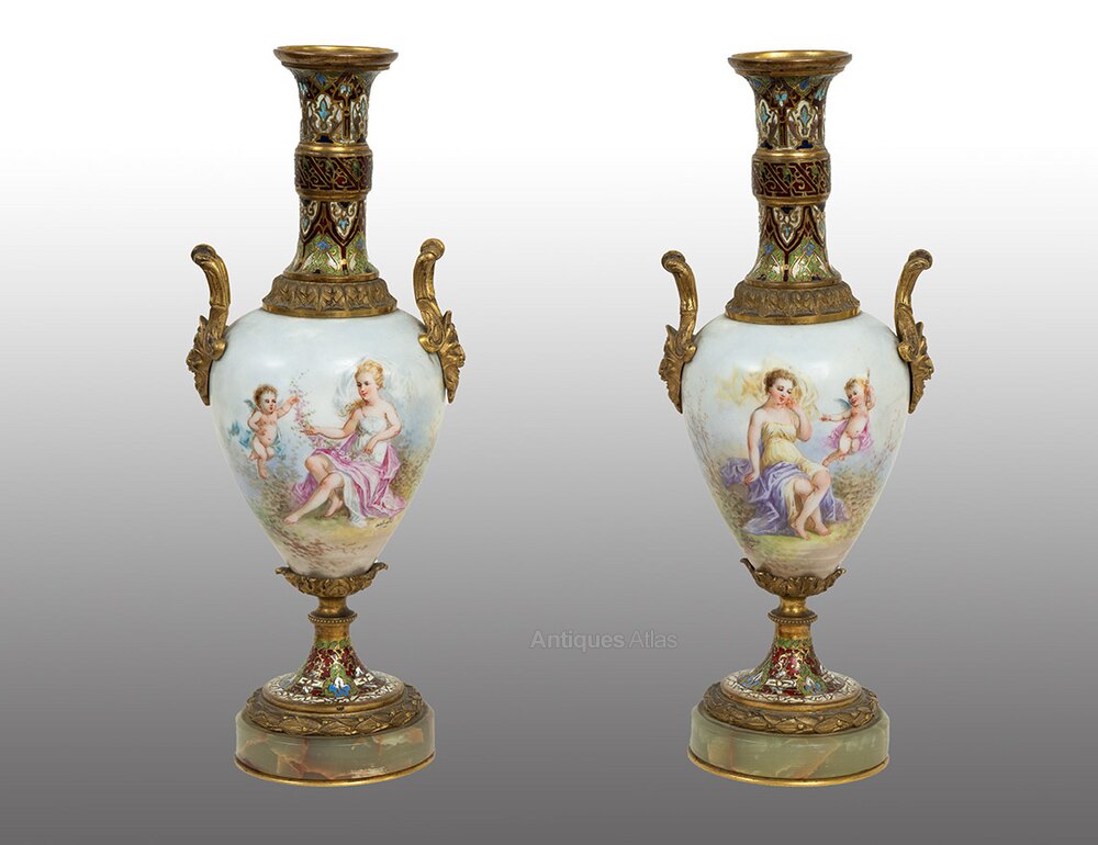 Description: Pair of antique Napoleon III vases in polychrome Sèvres and Cloisonné porcelain.