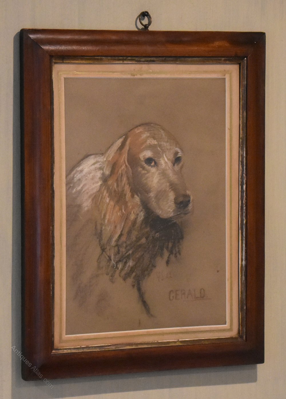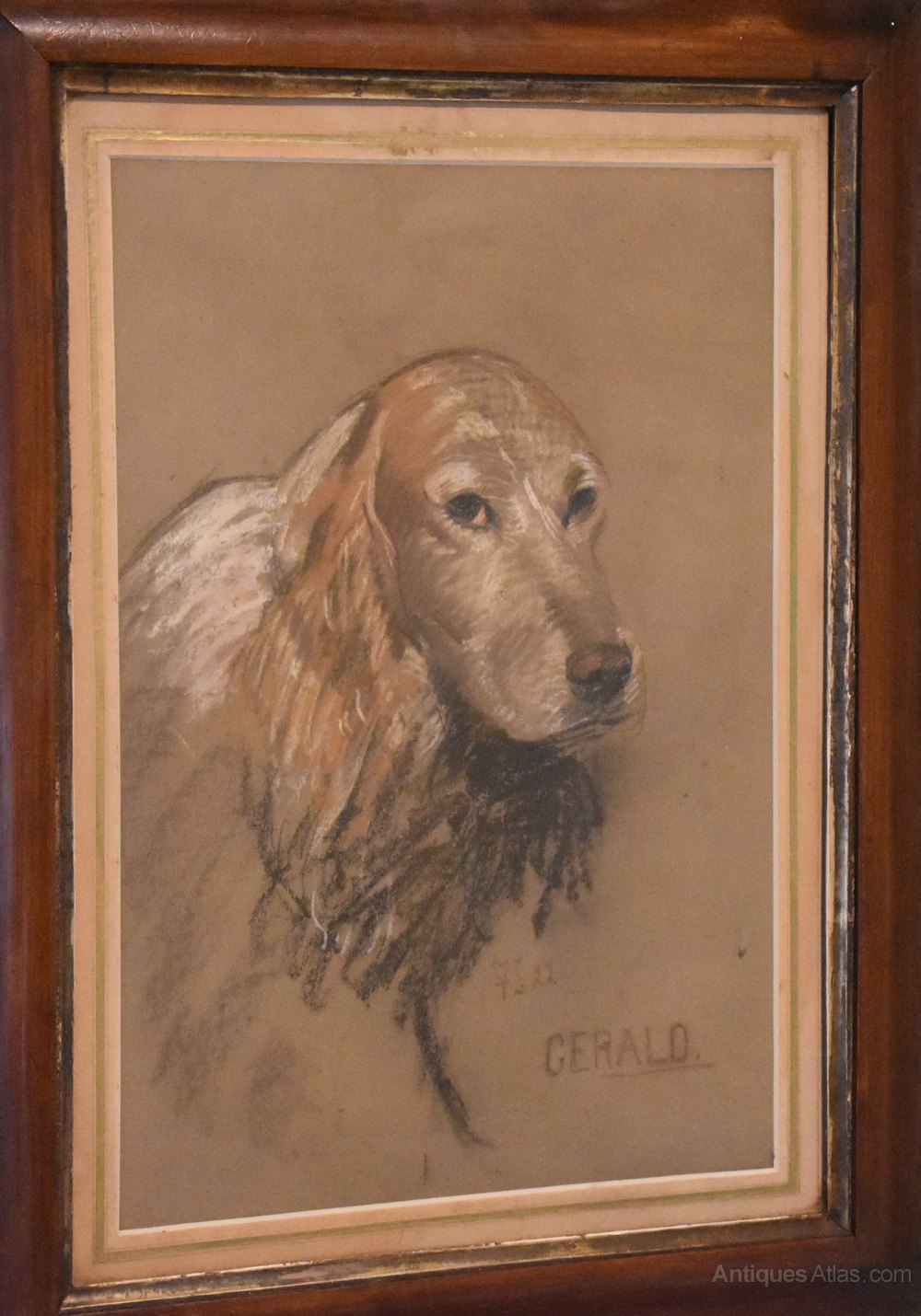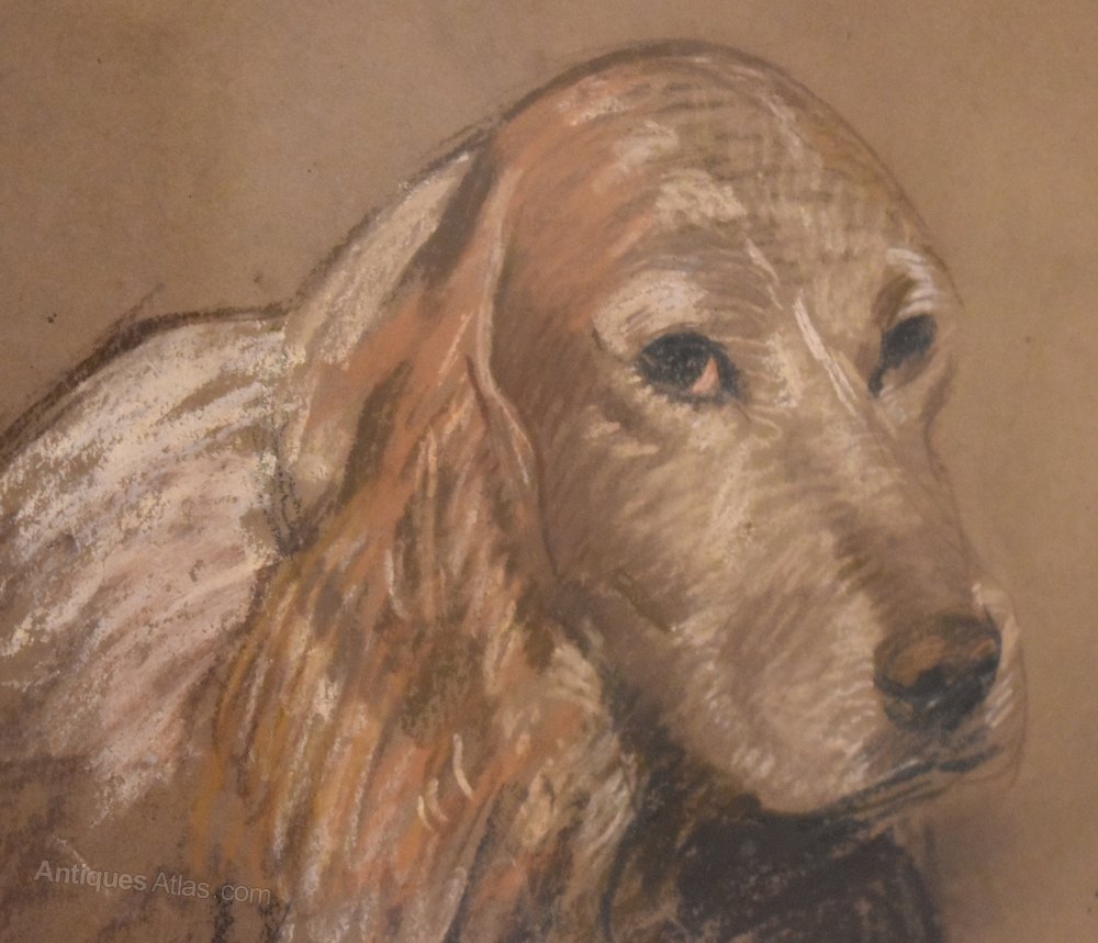 A charming pastel drawing of a spaniel called ‘Gerald’ by Wasdell Tricket. The portrait is beautifully worked quickly and confidently and captures the animal wonderfully. The condition is good with only the odd mark to the paper. The work is mounted in a nineteenth century mahogany frame that is in great untouched condition and works wonderfully with the piece. The drawing is dated 1922 and signed on the reverse. Wasdell Tricket was a specialist horse and animal artist working in the first part of the twentieth century. He was prolific but did not exhibit so there is little biographical record of him and indeed it seems he may have used different names as purely commercial artists often did. The work of Wasdell Tricket is always of a high standard and is very desirable. This piece is a great example of his pastel work and has a wonderful decorative appeal.