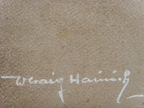 We are offering for sale this lovely pastel and goauche portrait by the artist Wolfgang Craig Hainisch, who has signed the portrait in the lower right hand corner.