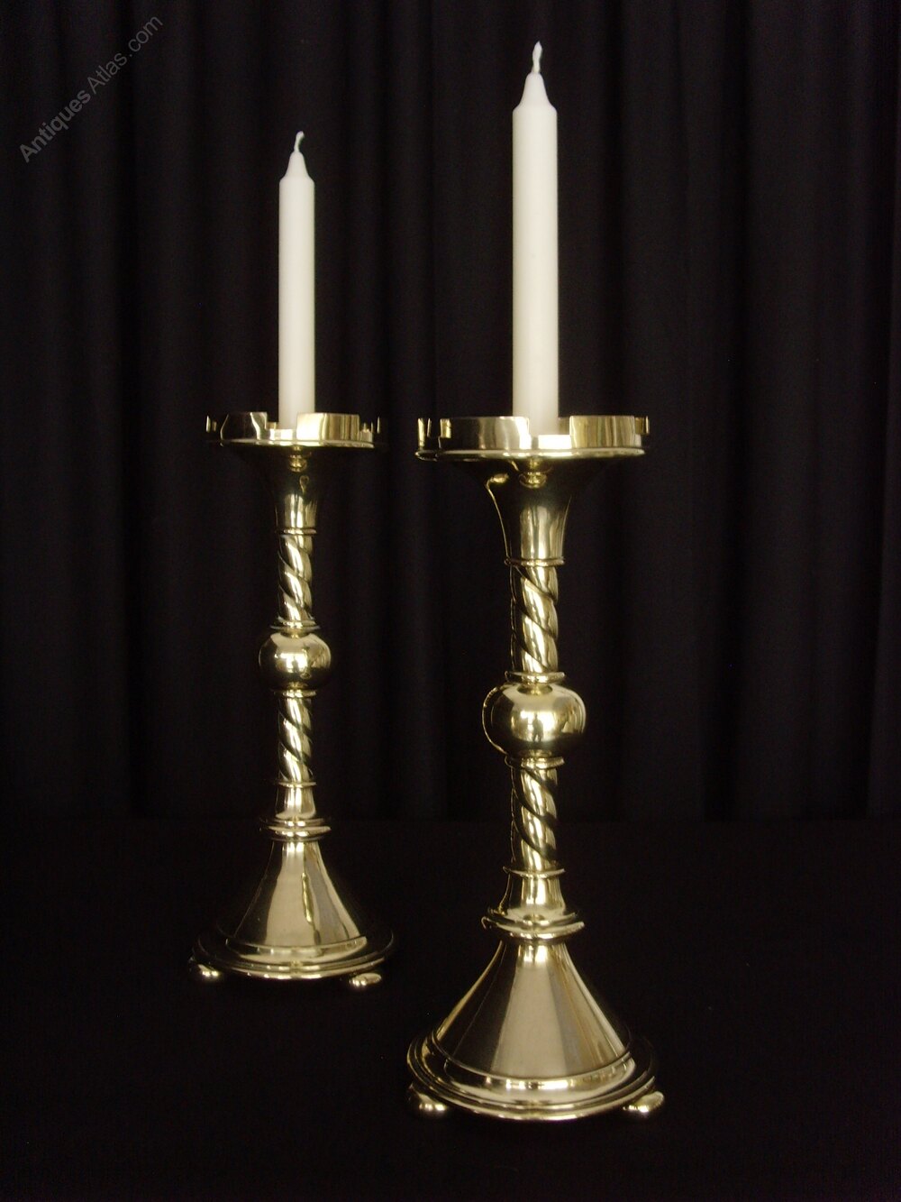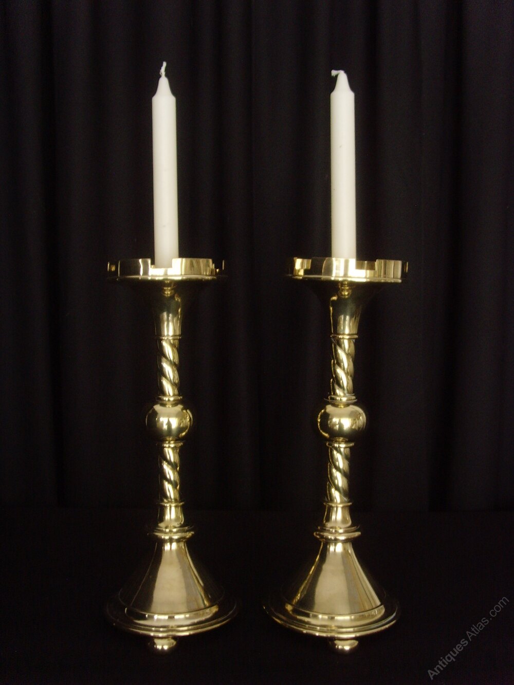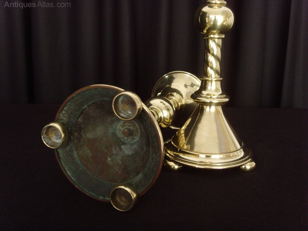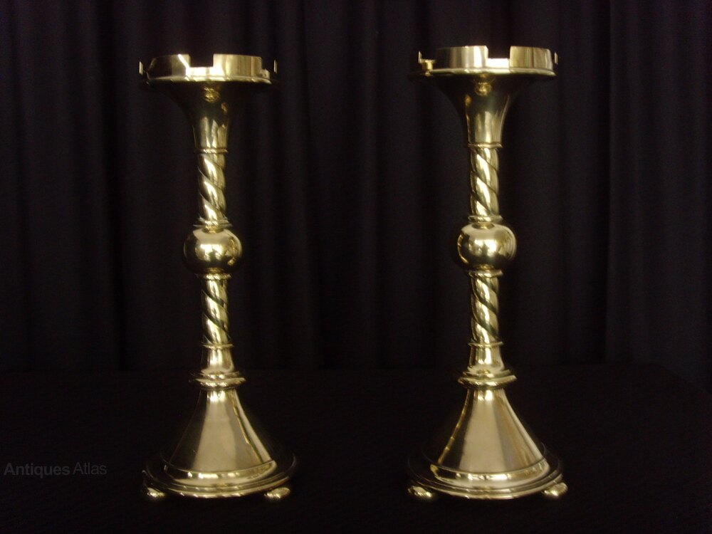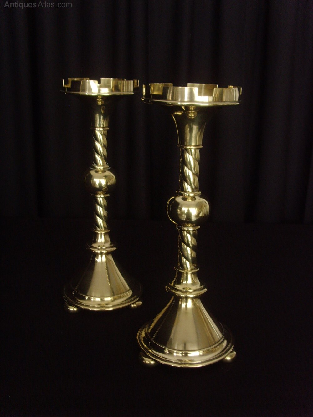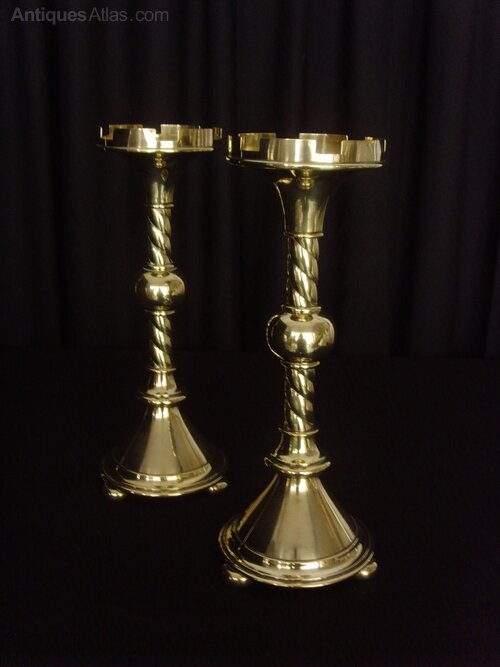 Pr. Fine Quality 19th C. Gothic Brass Candlesticks