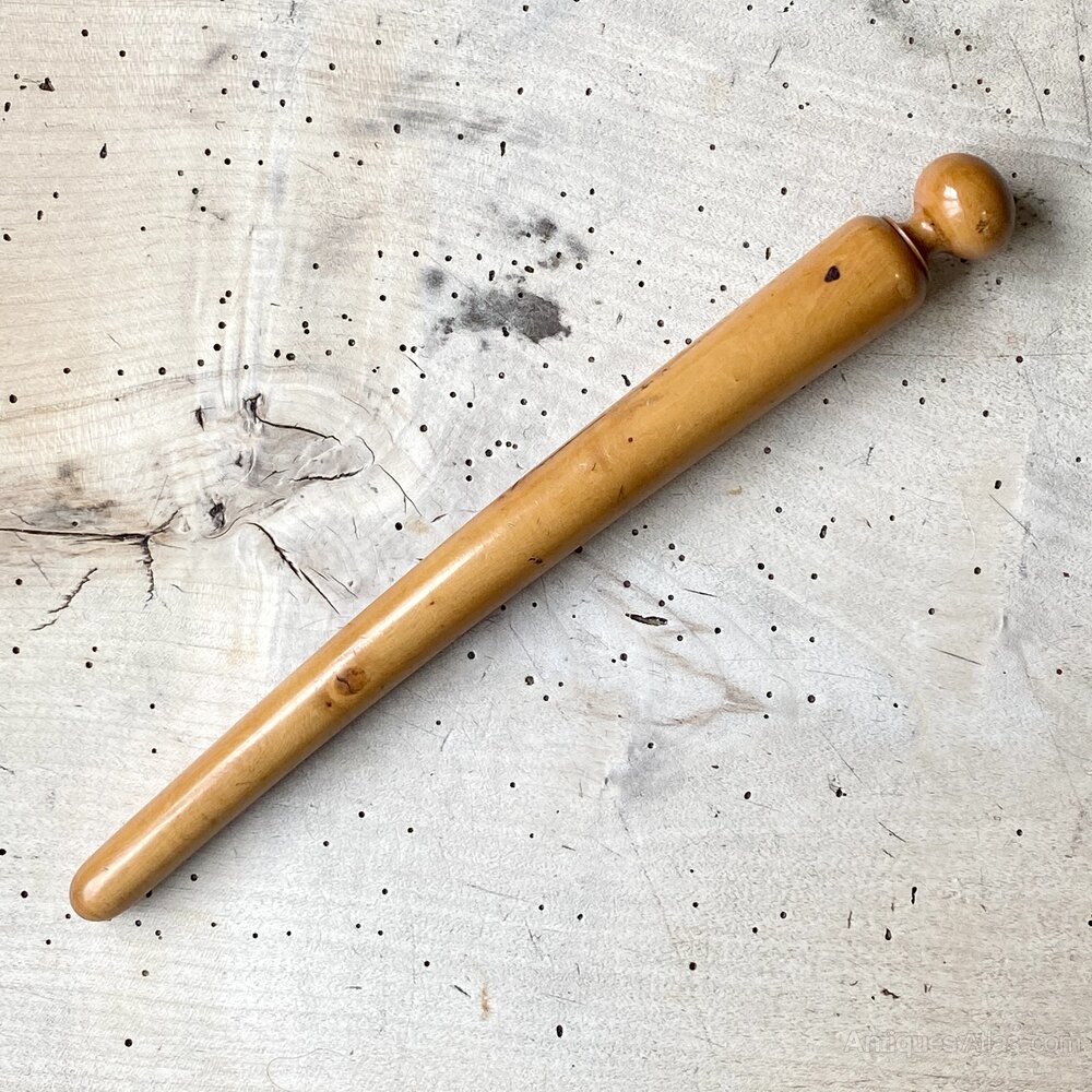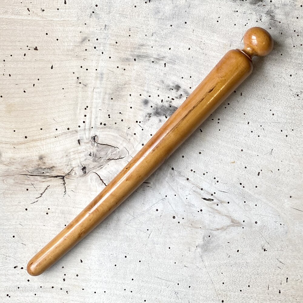 A rare and beautiful 18th Century Pole lathe turned Fruitwood Lard Skewer. Displaying outstanding colour and surface and in perfect condition. A most impressive item of early Welsh/English Treen that would complement any collection.