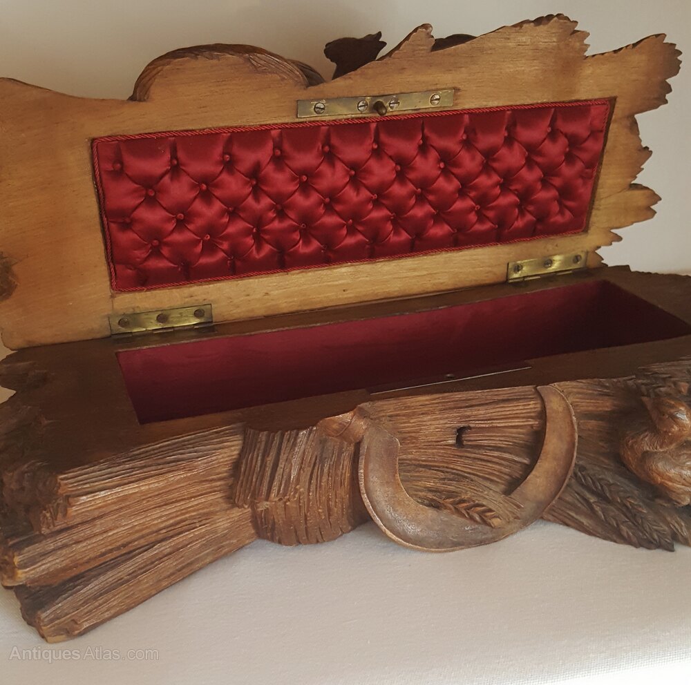 RARE VERY LARGE BLACK FOREST CARVED LINDEN WOOD JEWELLERY BOX C1890 BRIENZ