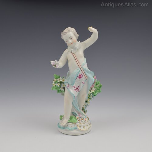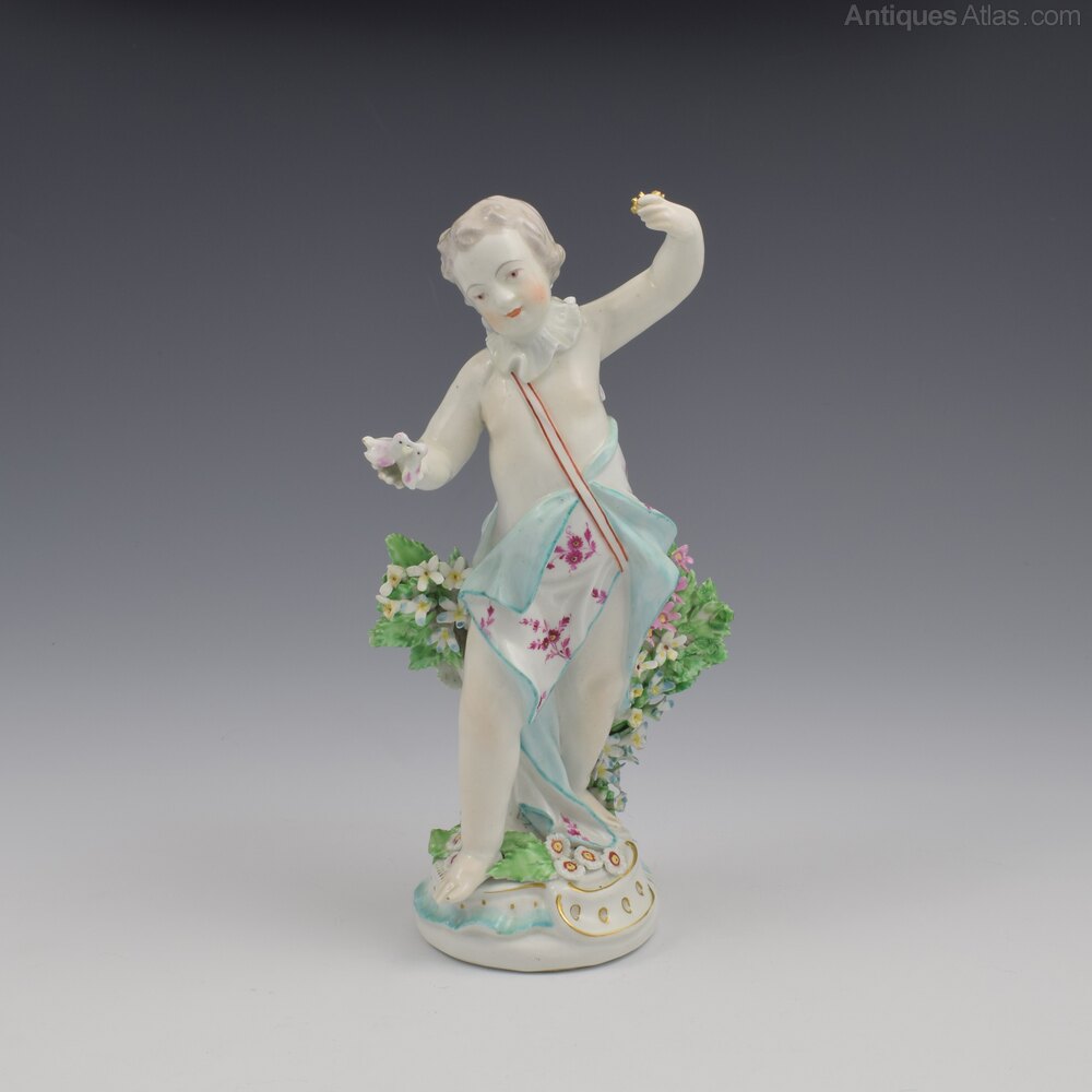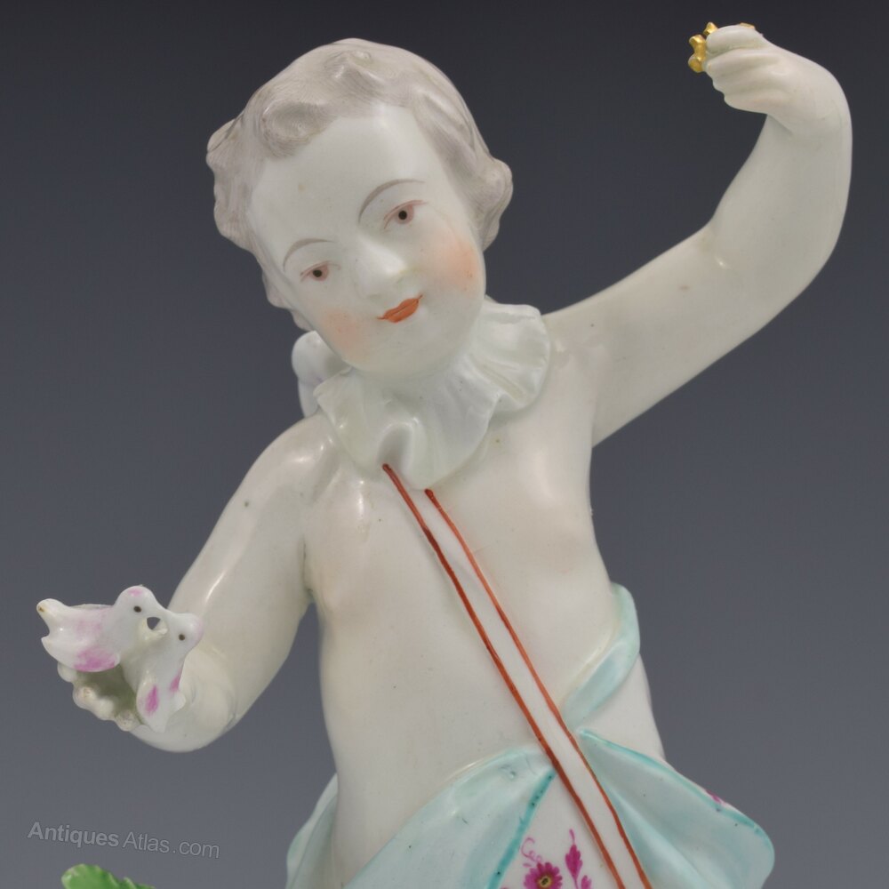 Rare Derby Porcelain Figure Cupid With Doves & Key