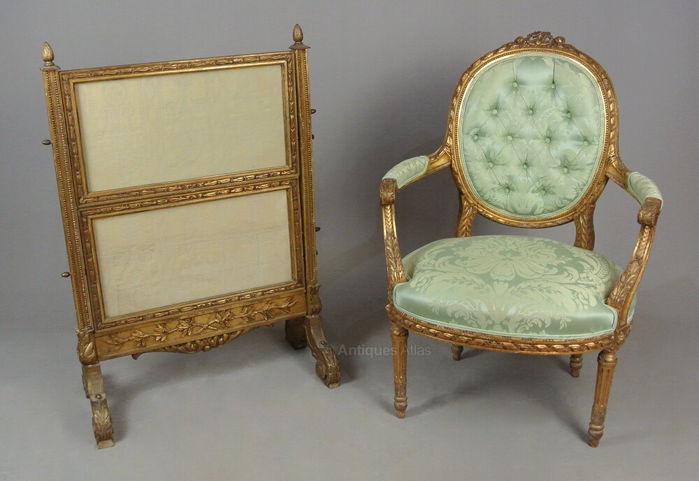 Antique French Painted Gilt Wood Screen
