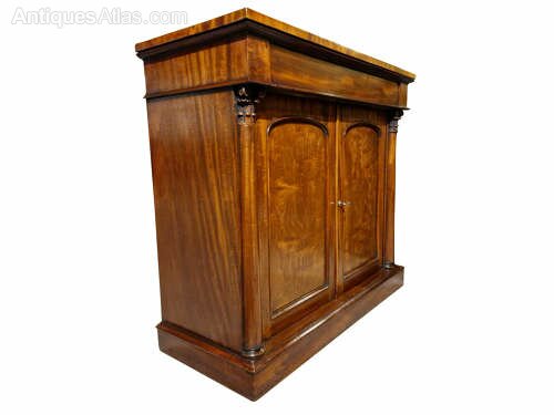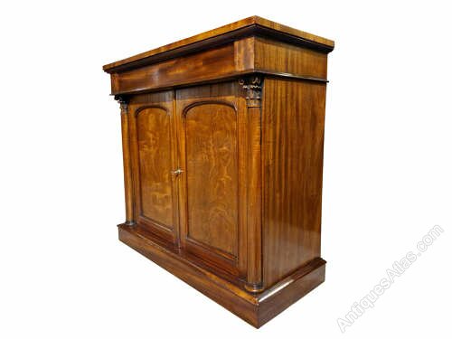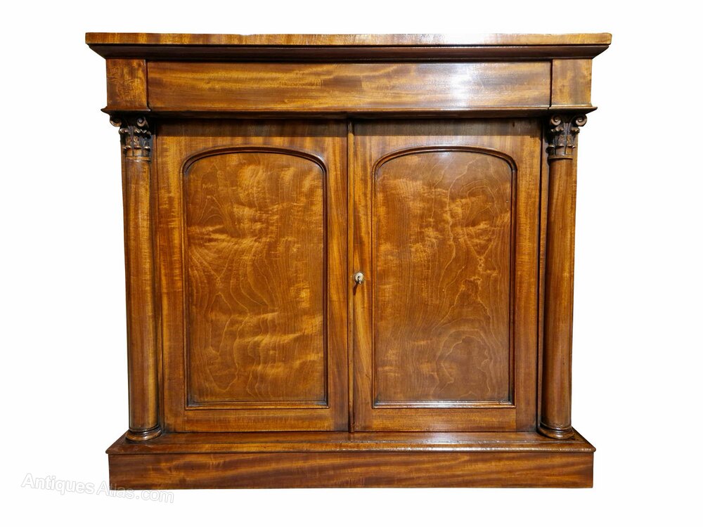 A Regency mahogany chiffonier with two doors flanked by graduated columns finished with corinthian capitals with drawer above.