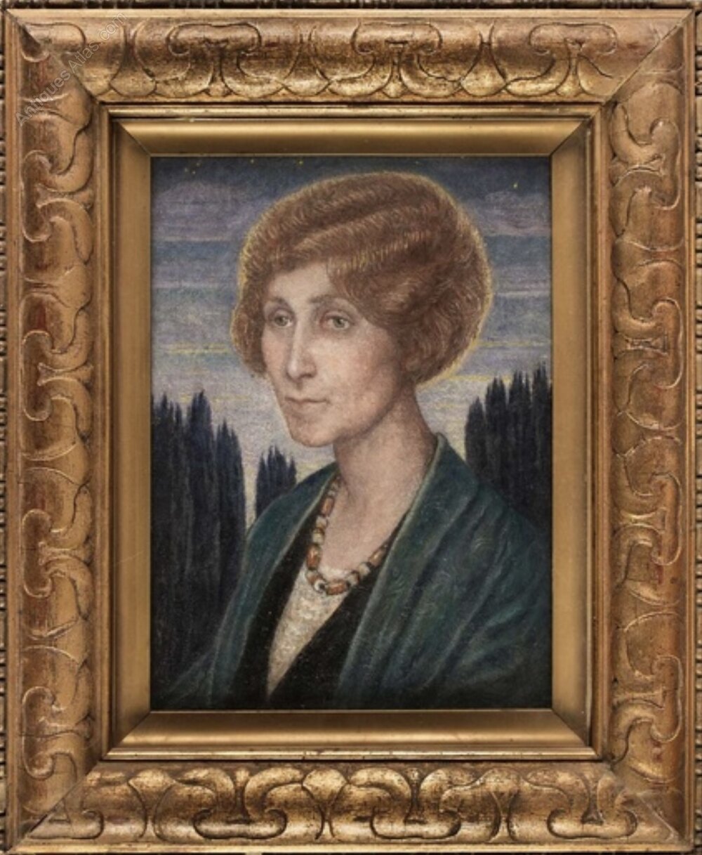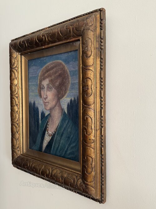 Attractive original Arts & Crafts-style gilt moulded frame, glazed.