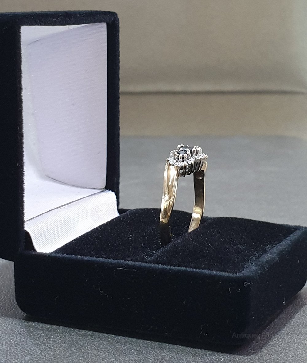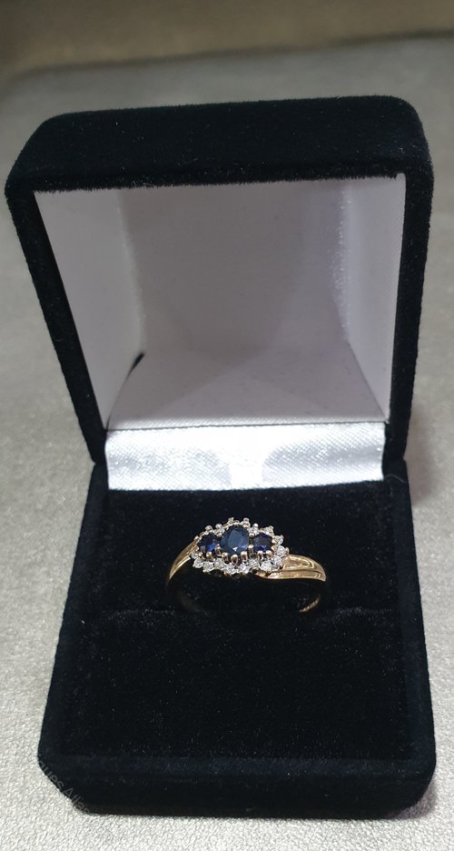 Sapphire Illusion set Diamonds Platinum & 9ct Gold Size M