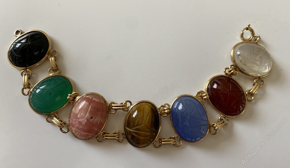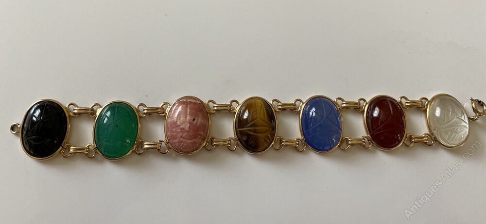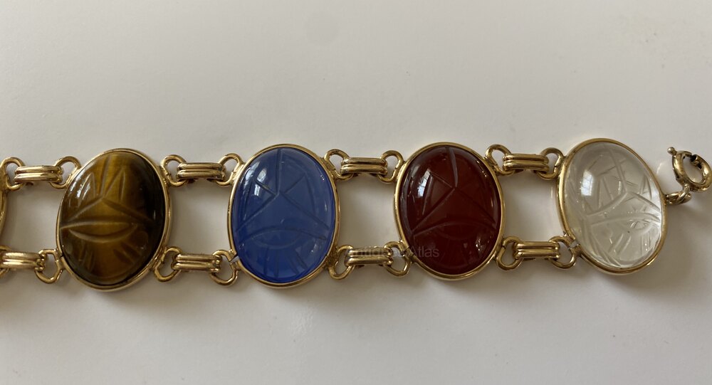 Scarab Beetle Hardstone Bracelet.Rolled Gold