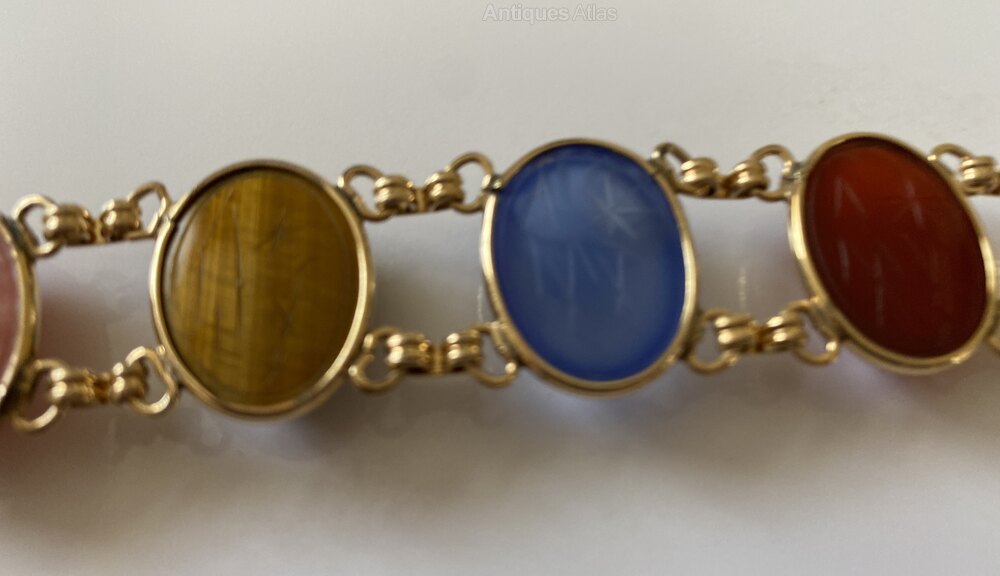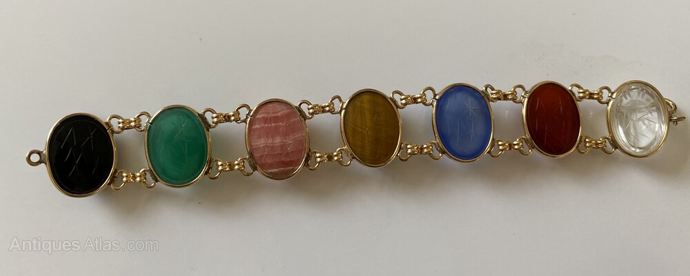 A Multi Agates Scarab Beetle and Rolled Gold Bracelet.c.1930/40