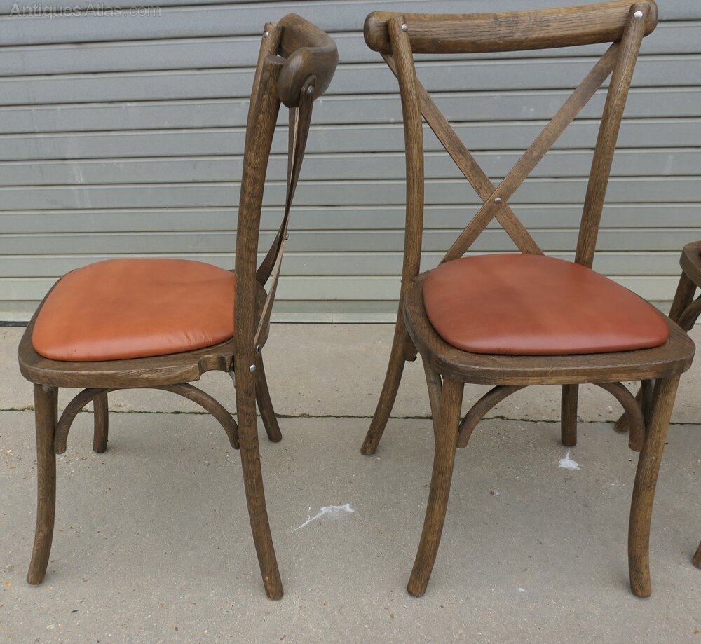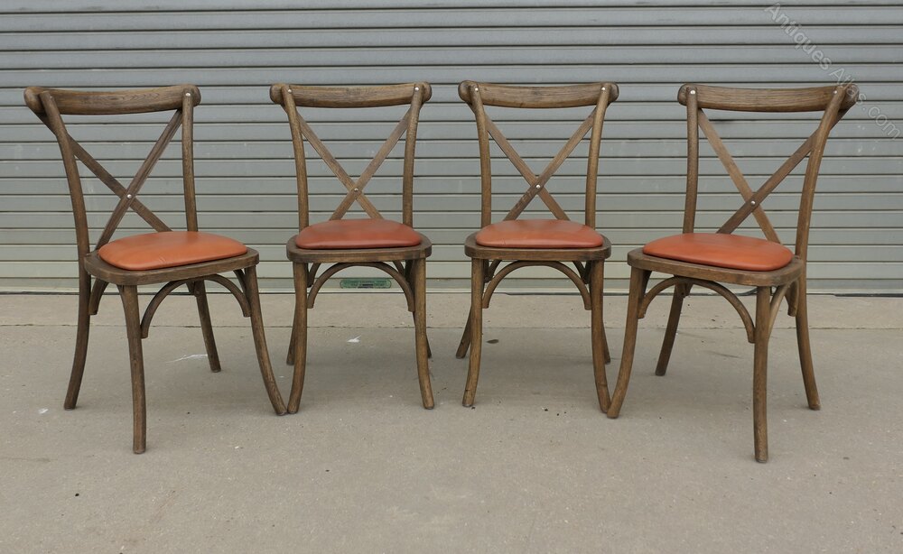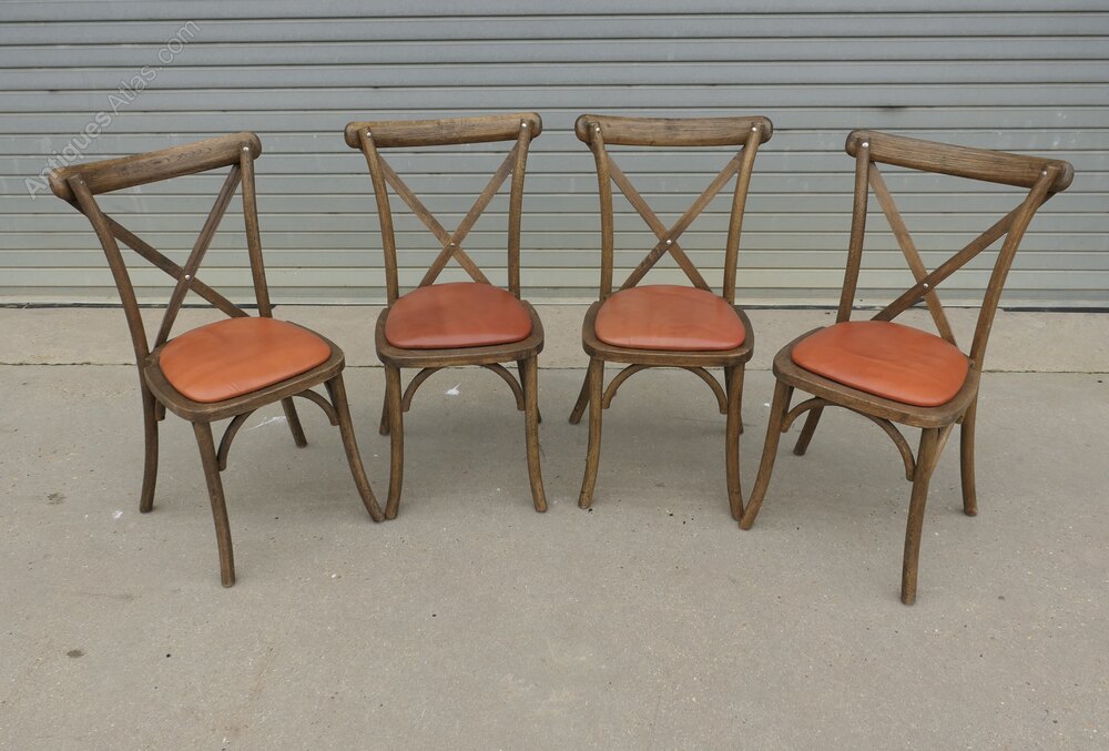 This is a Good sturdy set of Bentwood Style Chairs, traditionally this type of chair was used in European Bistros, we have here set of 4 with new leather covered seats
