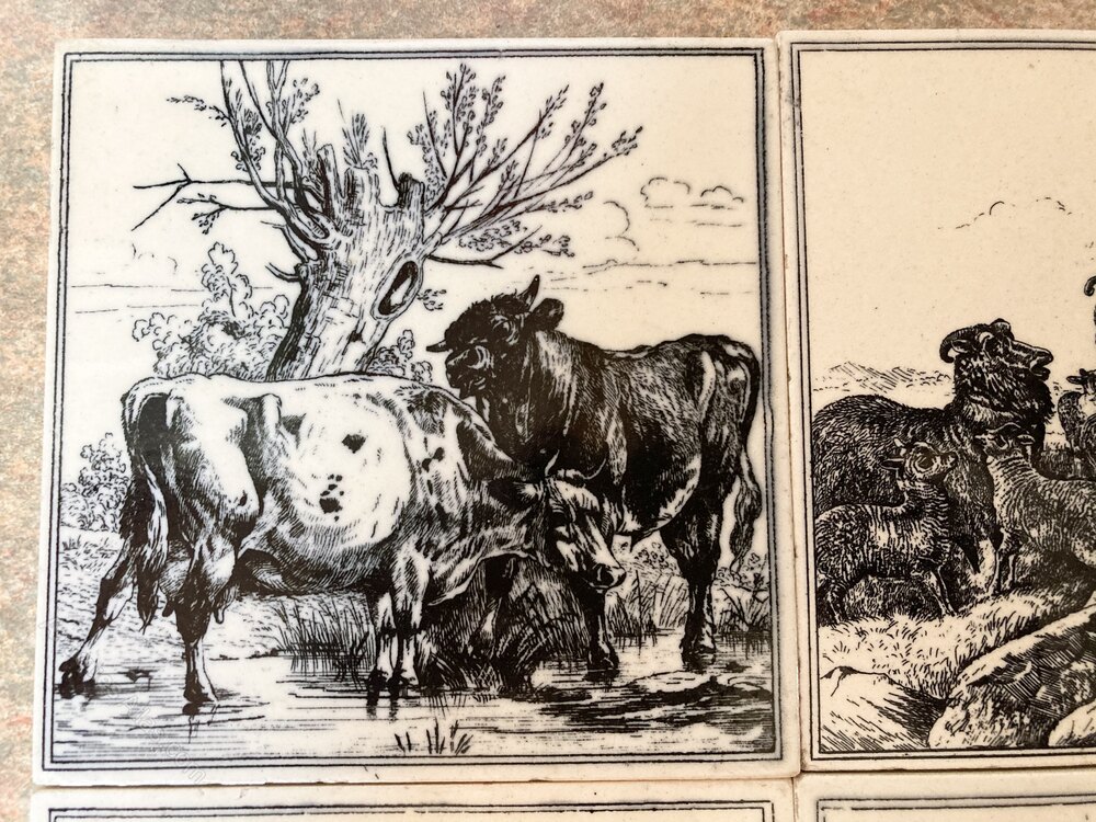Lovely set of four late 19th century countryside and farm animal tiles by Minton, Hollins & Co.