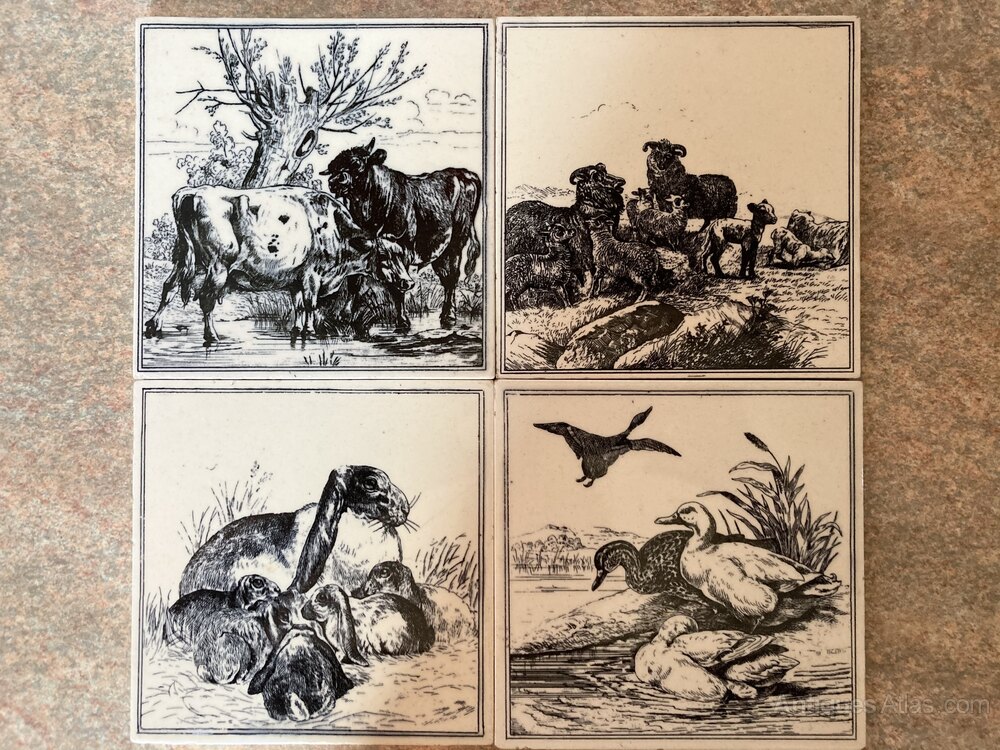 Set of Minton Farm Animal Tiles by WP Simpson 1880