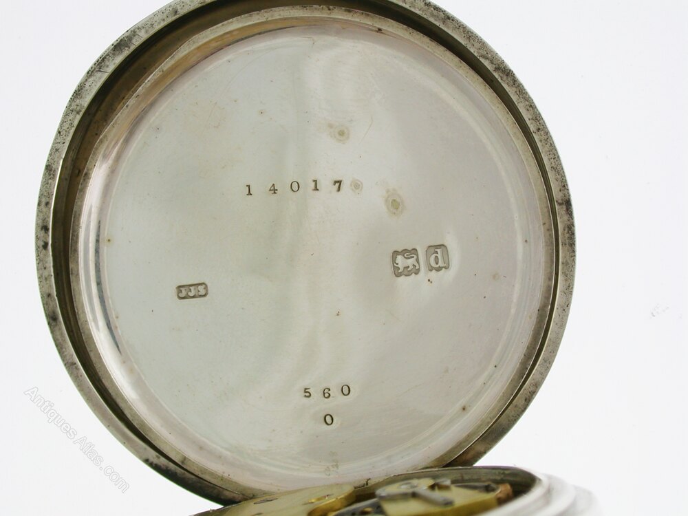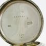 CASE: The watch lies in a silver open-face case with an engine-turned finish and a monogram-free cartouche. The inner side of the case is hallmarked silver/London 1899 and numbered 14017-560. The case maker is ‘JJS’
