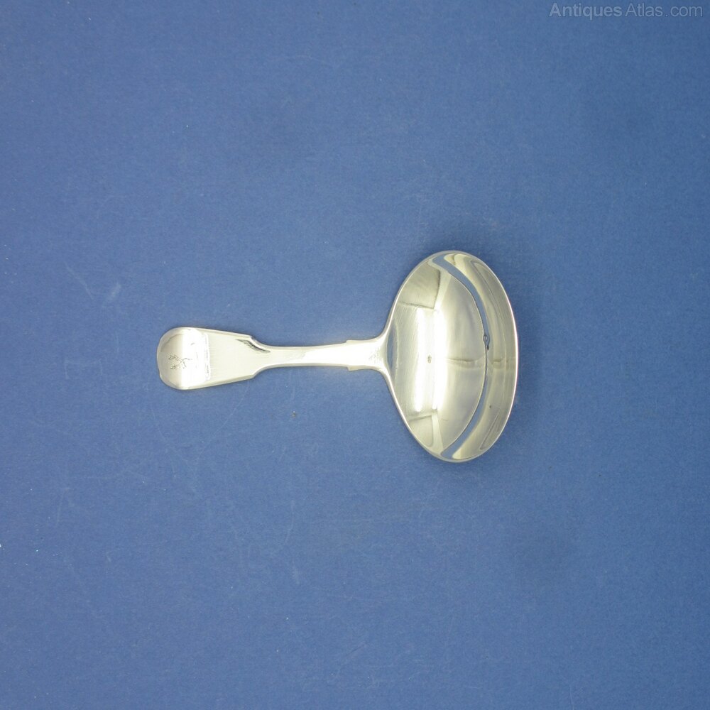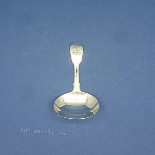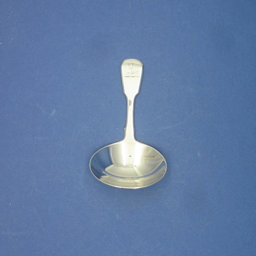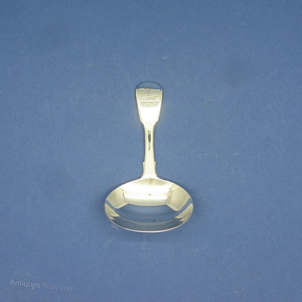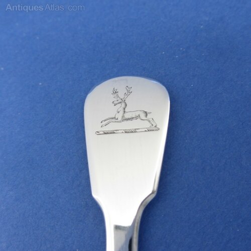 This is a George IV Regency period Silver Tea Caddy Spoon with a Family Crest Of a leaping Stag.