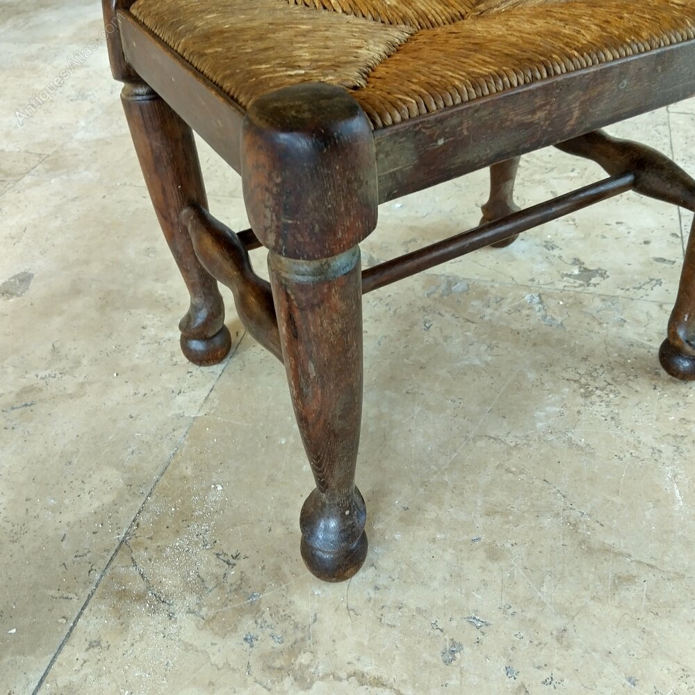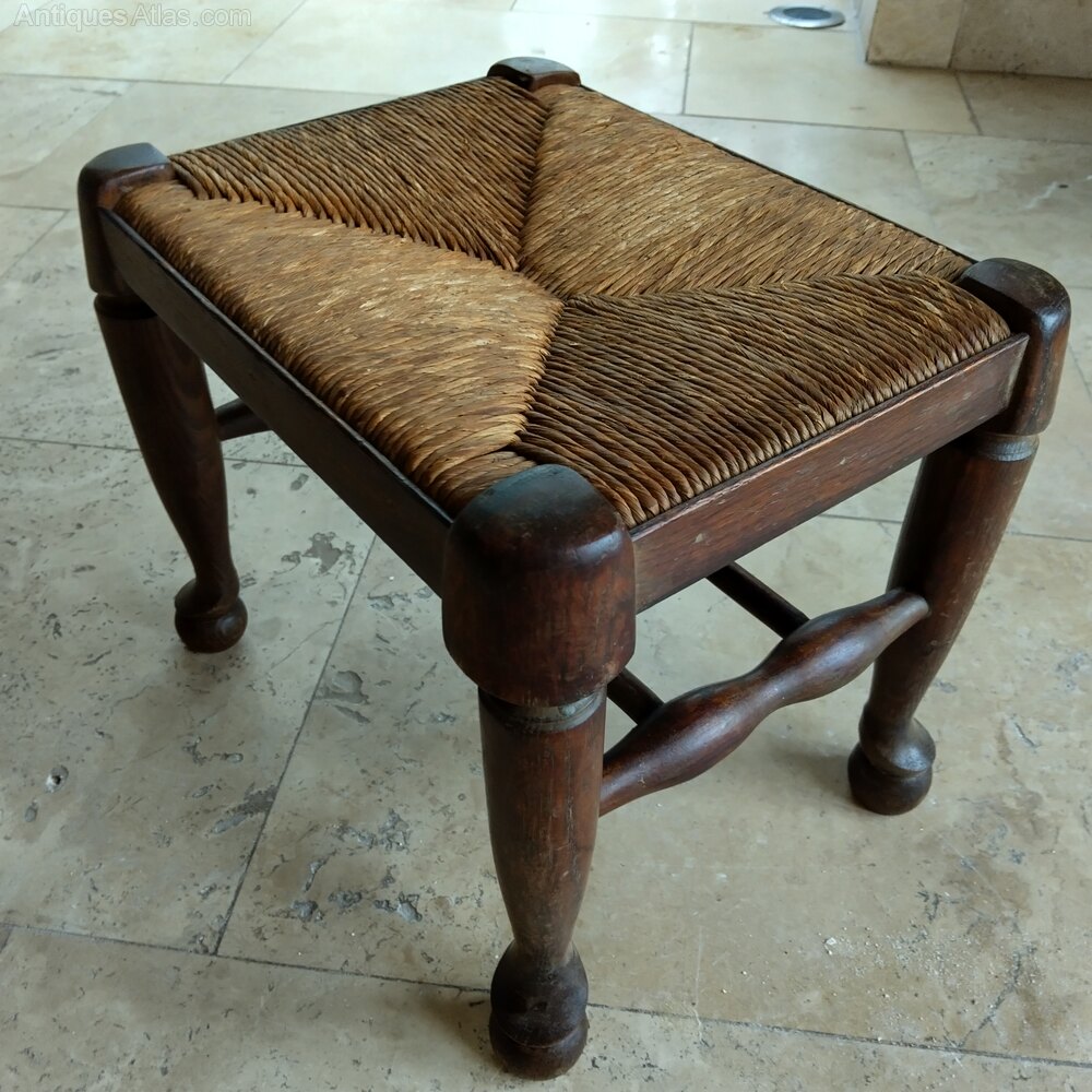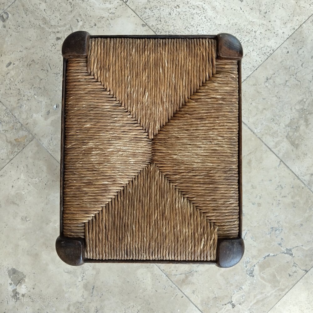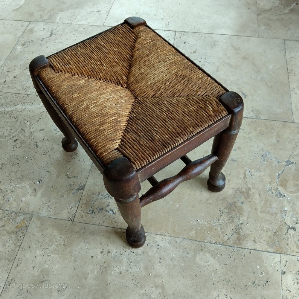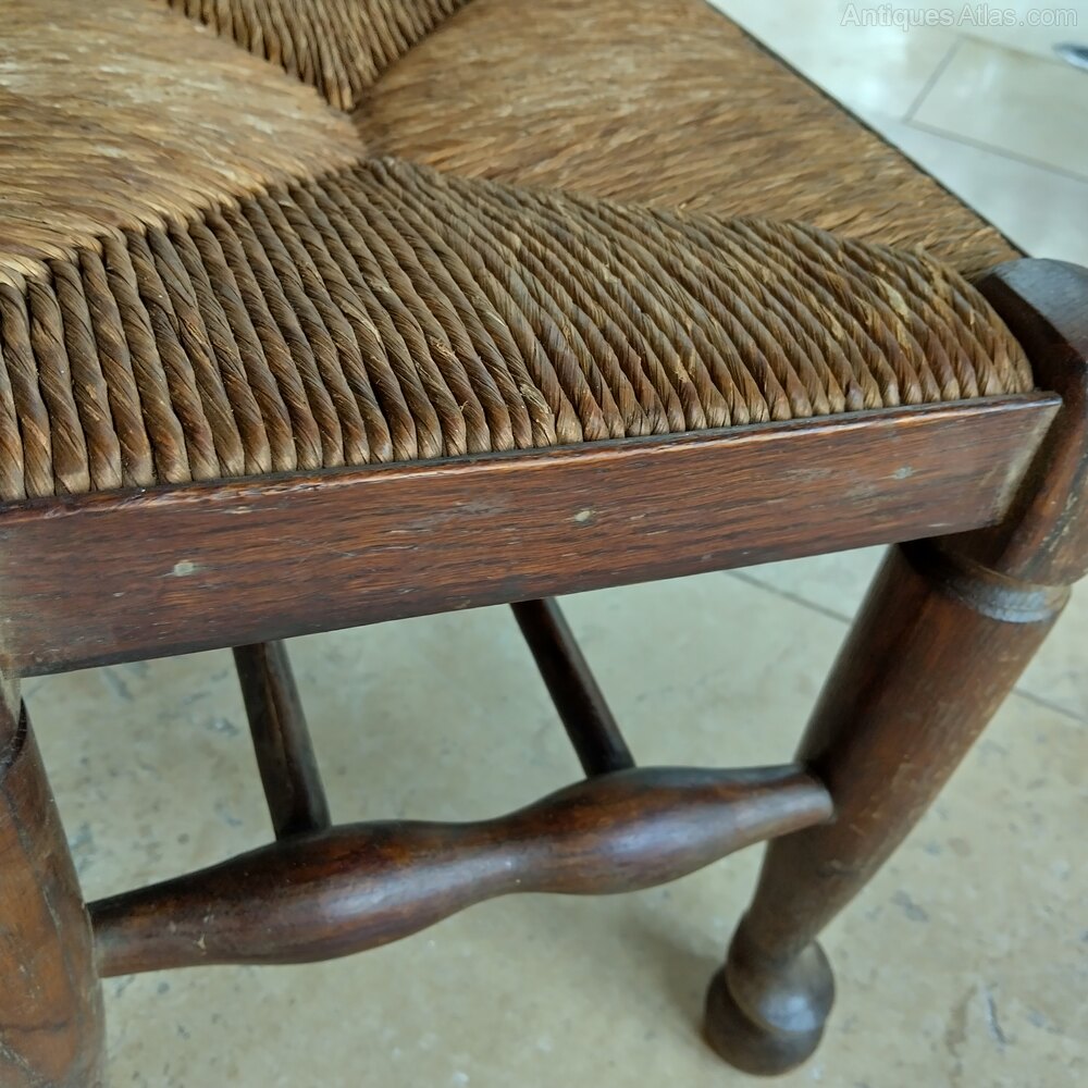 A lovely small stool, circa 1900 in very nice condition. All rush is good, no strands escaping. The Oak Wood work is tidy and we have given it a clean and rewaxing. It has rather pleasing double stretchers coming from the turned ones on the ends, everything sitting on a turned ball shape covered by a pad. All in all a great little stool at sensible money.