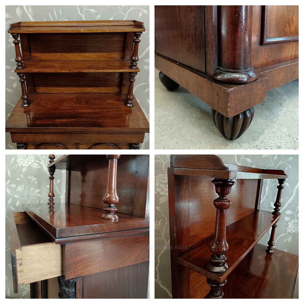In very good structural condition. Showing signs of age and use with some minor blemishes. There is a fine gap between the finishing gallery and the top shelf. Nothing that detracts from the beauty of this piece.