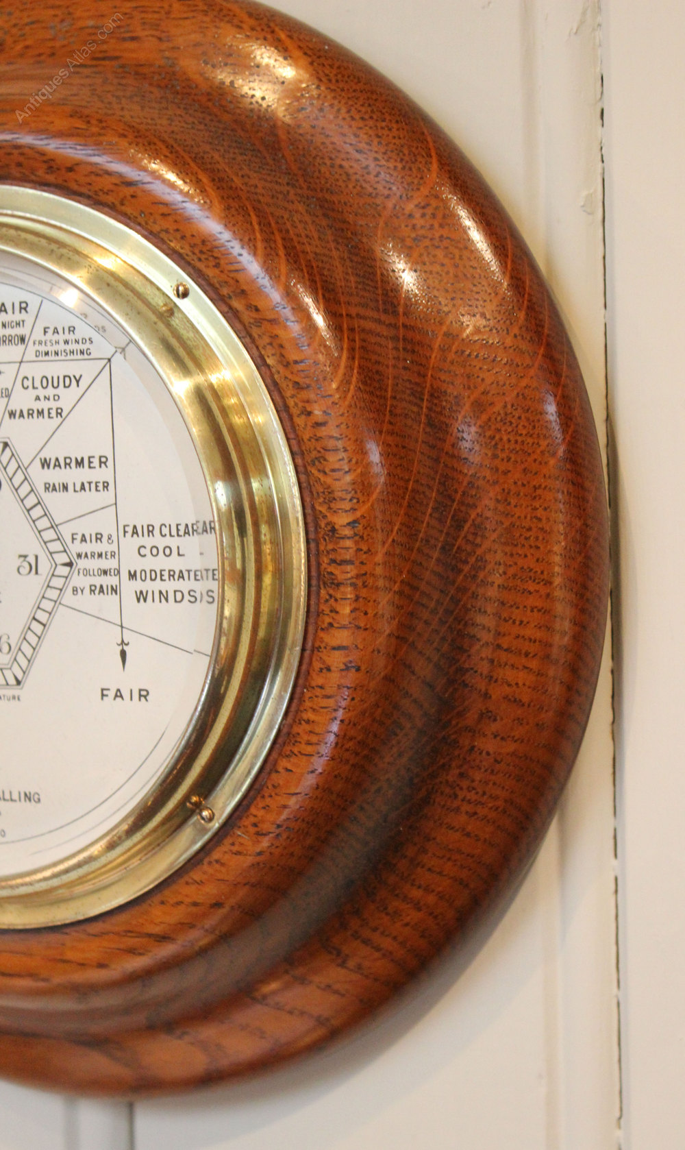 Solid Oak Rise and Fall Aneroid Barometer (England