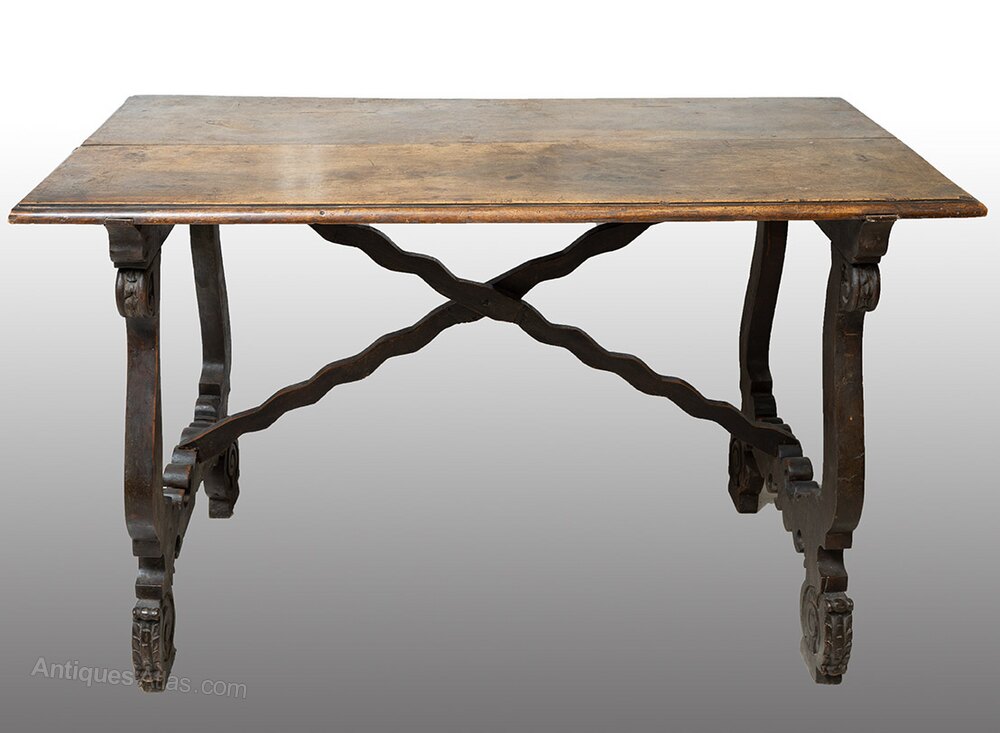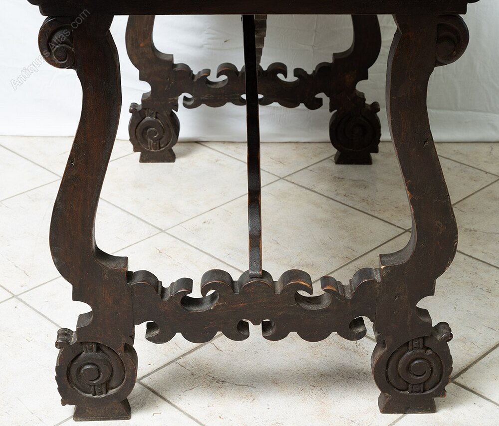 Description: Antique refectory table in solid walnut from the early 18th century, originating from Naples.