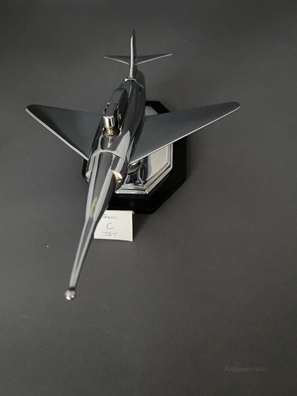 Chrome shaped base, sitting on black Bakelite base