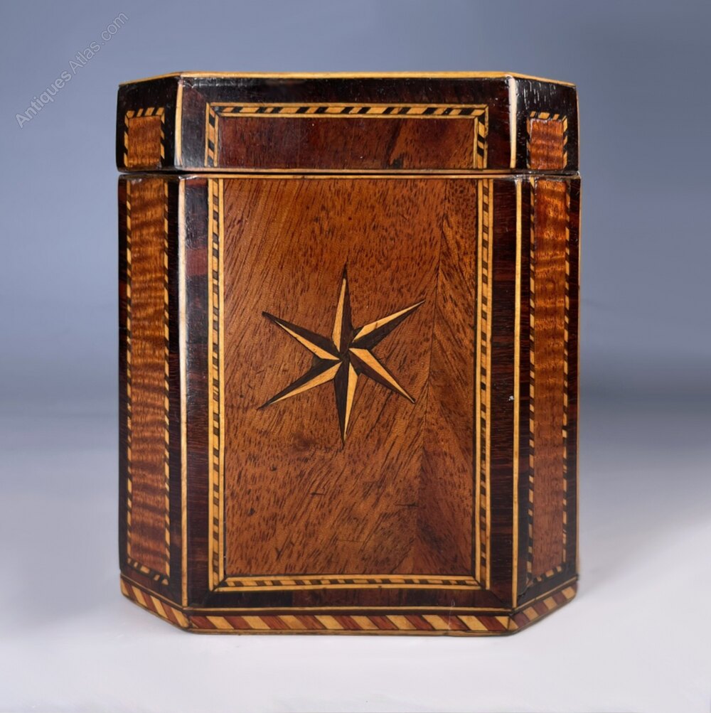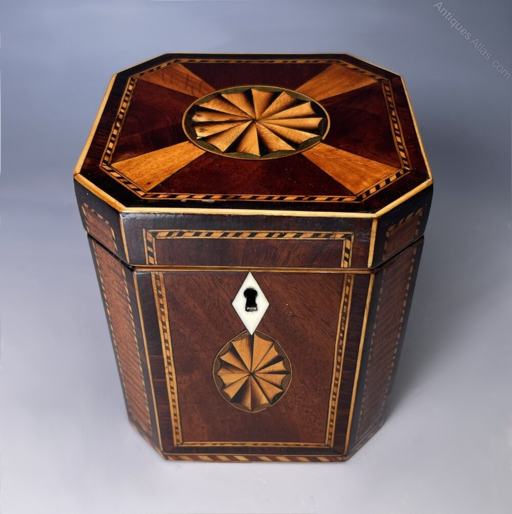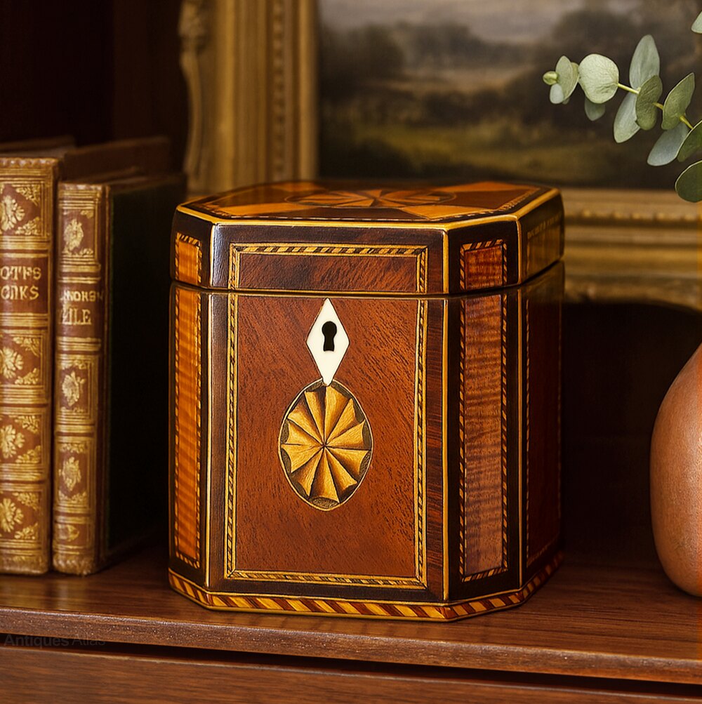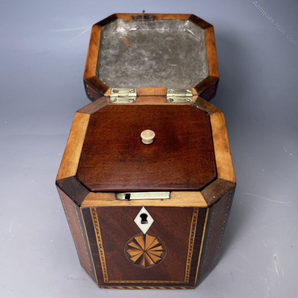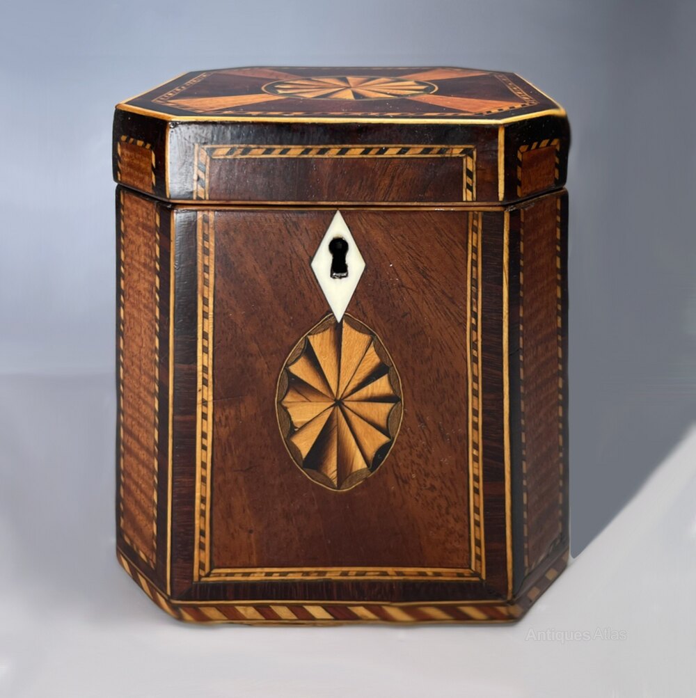 Georgian Tea Caddy with Inlaid Marquetry - c. 1800