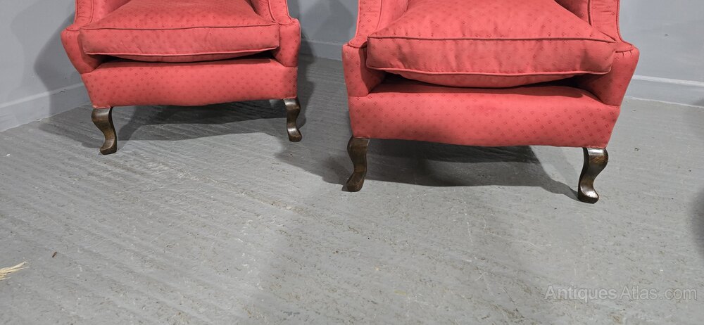 Superb pair of English mahogany porters chairs, serpentine shaped hoods, feather filled cushions, slight fading to arms but otherwise in great overall condition.