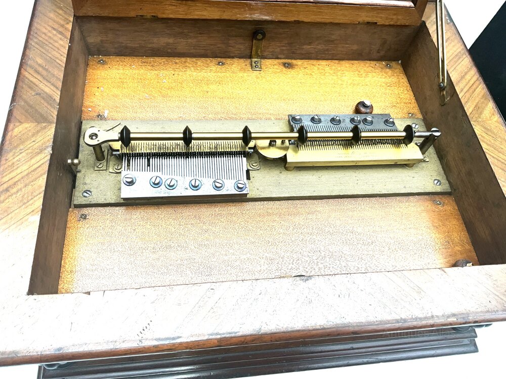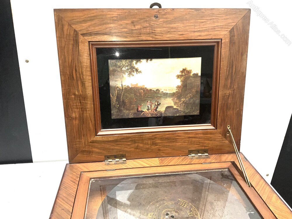 Featured Walnut large and heavy sizes are length 56 cm depth 45 cm height 27 cm, in working order twin combs one has 2 teeth missing disk is 13 & 5/8 inches, offering free worldwide delivery, reference DMBSS Tel: +44 7505 165 843 We accept online payments for all our items listed: Bank transfer cash on collection or if wishing over the phone using your debit or credit cards, also doing layby payments plan, or email giving your address details & contact number and we shall send you your items invoice to make payment with your card. Send your request to - john.strong2@gmail.com
