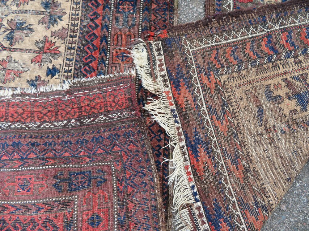 Both persian. Ok to keep the pets on or scatter about in a home. Both with wear,losses,small holes. Still with life in them with nice patterns. Sizes in item title. Fringes not measured in sizes. U. K post £16 for both. Now selling very affordable rugs and items. Fos 35. Purveyors of unusual rare distinctive quality tribal rugs & carpets,howard & sons seating,some orientalist items & decorative objects for the everyman.