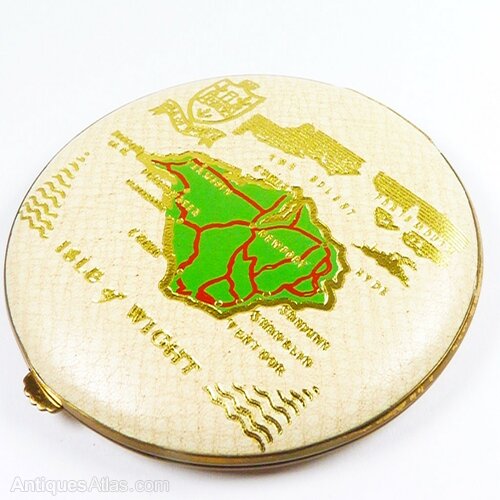 The lid is embellished with a green map of the Isle of Wight with a gilded border and coat of arms.
