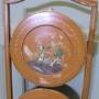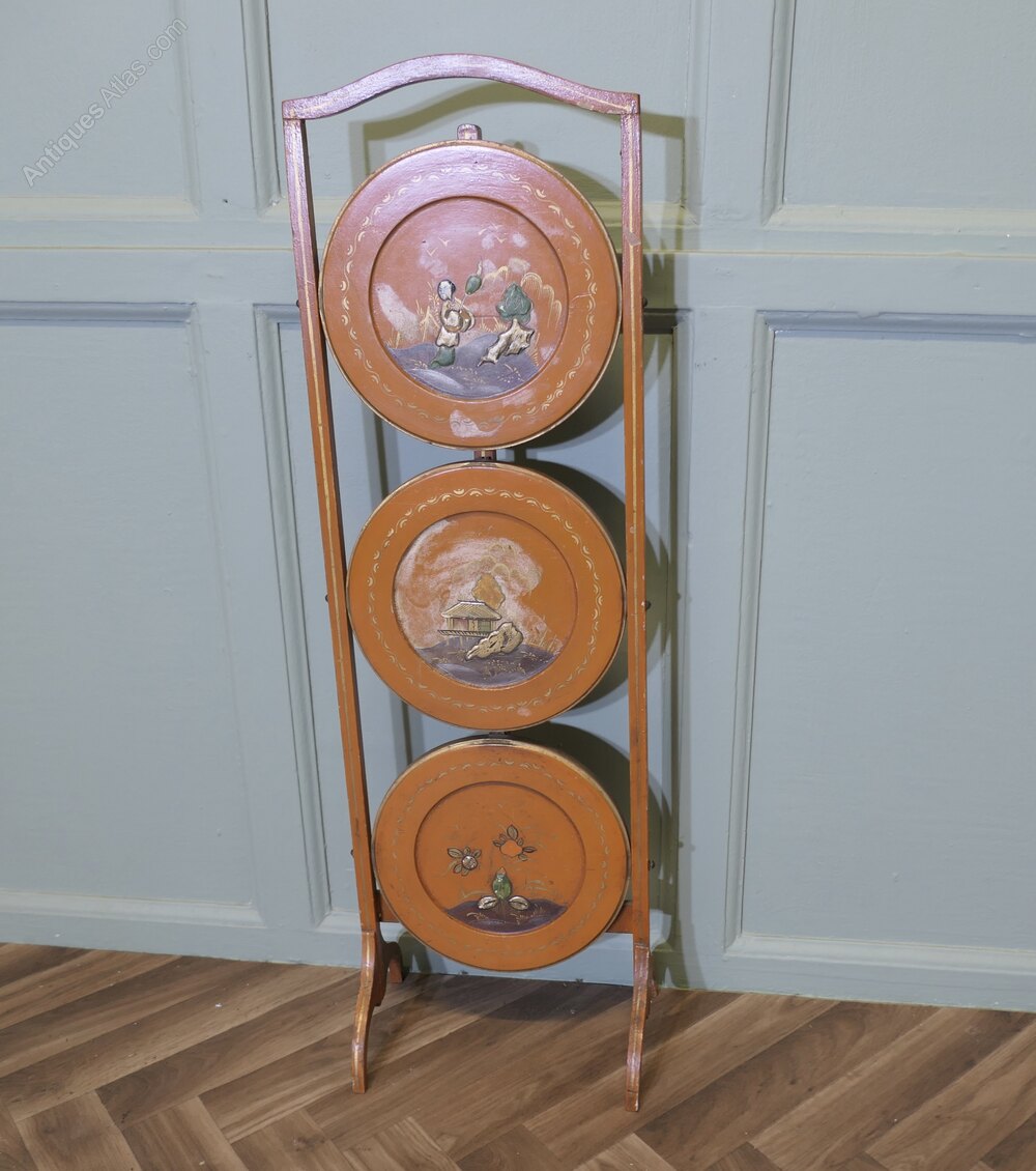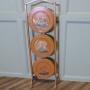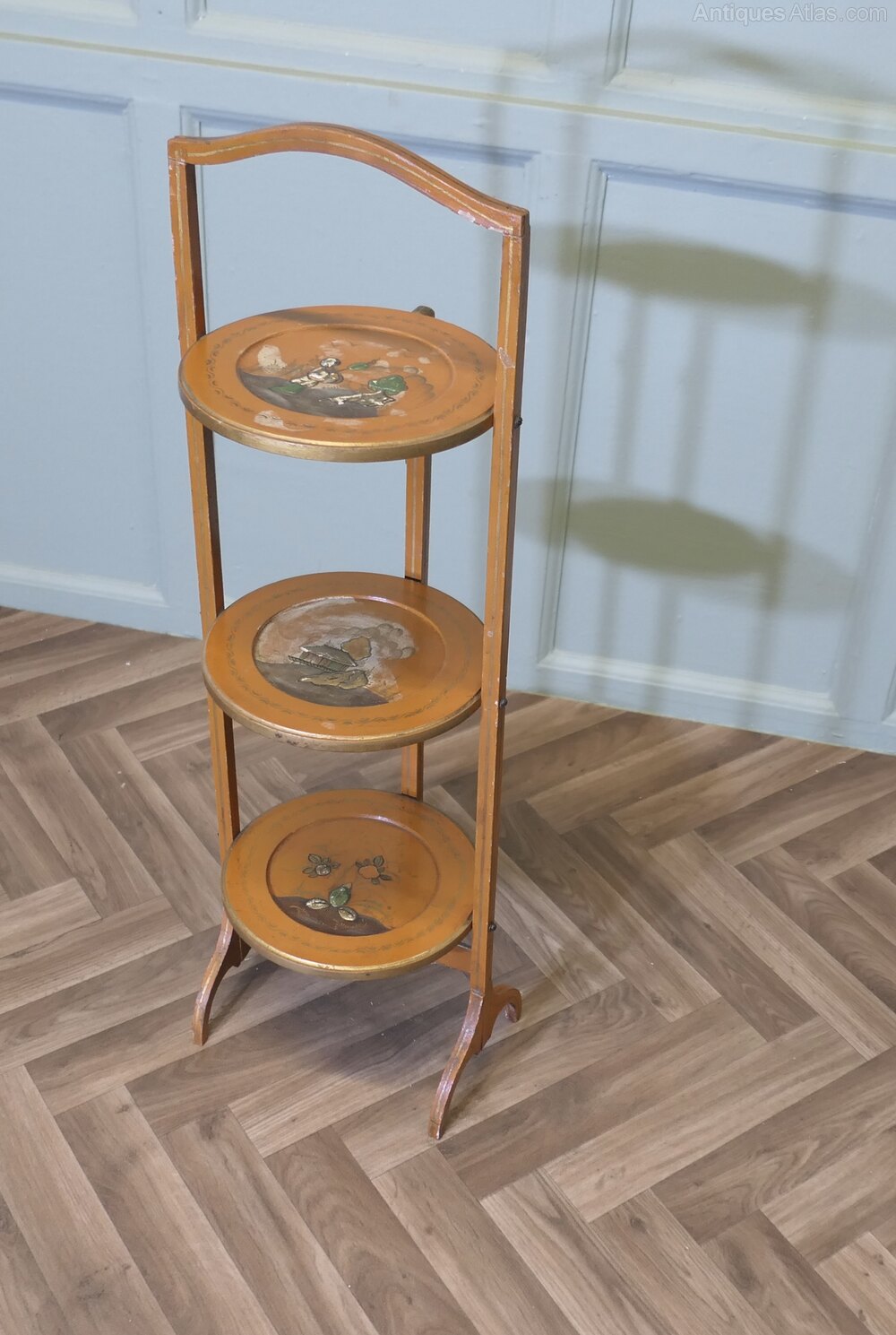 The stand is in good condition, it is 35” tall and the shelves are 11” in diameter