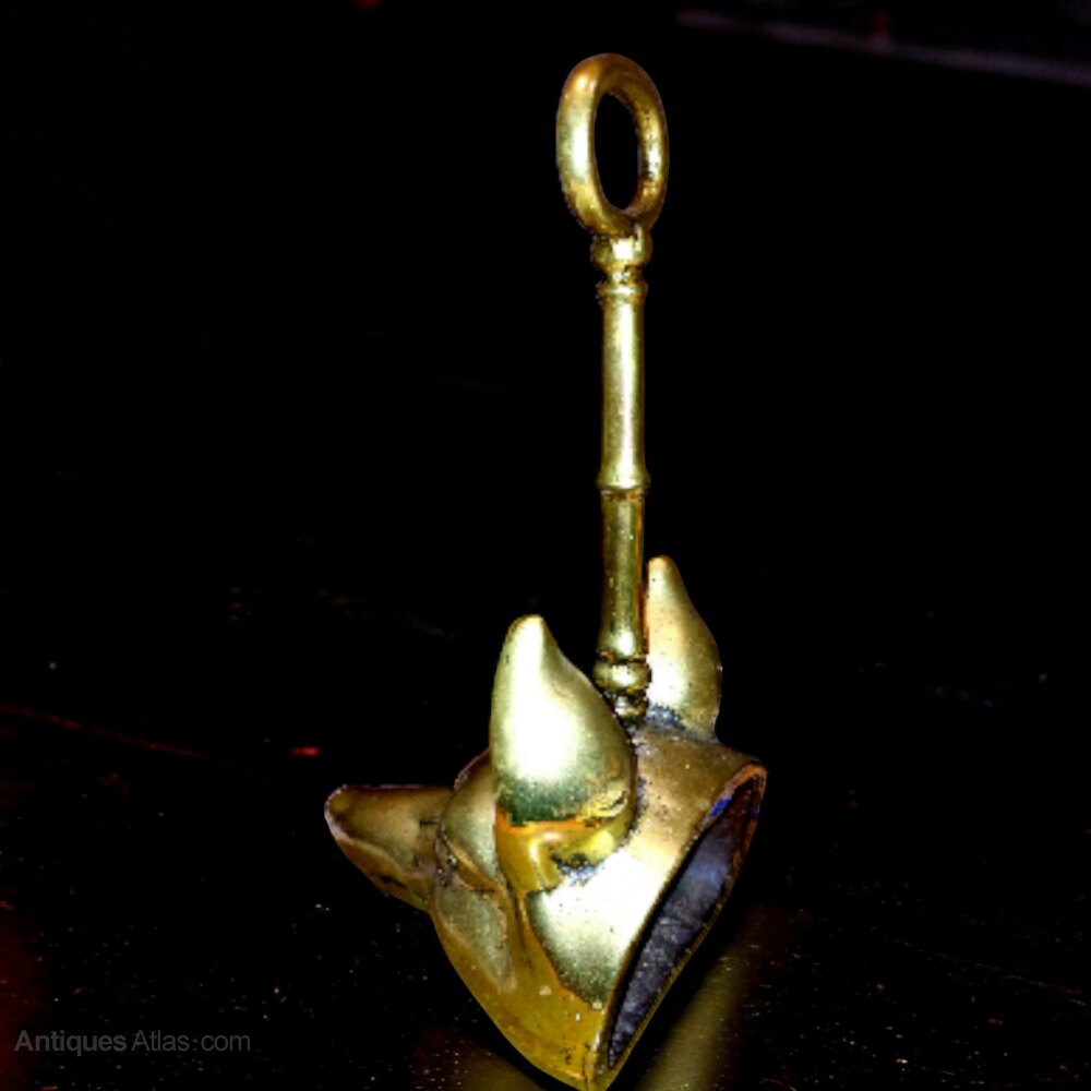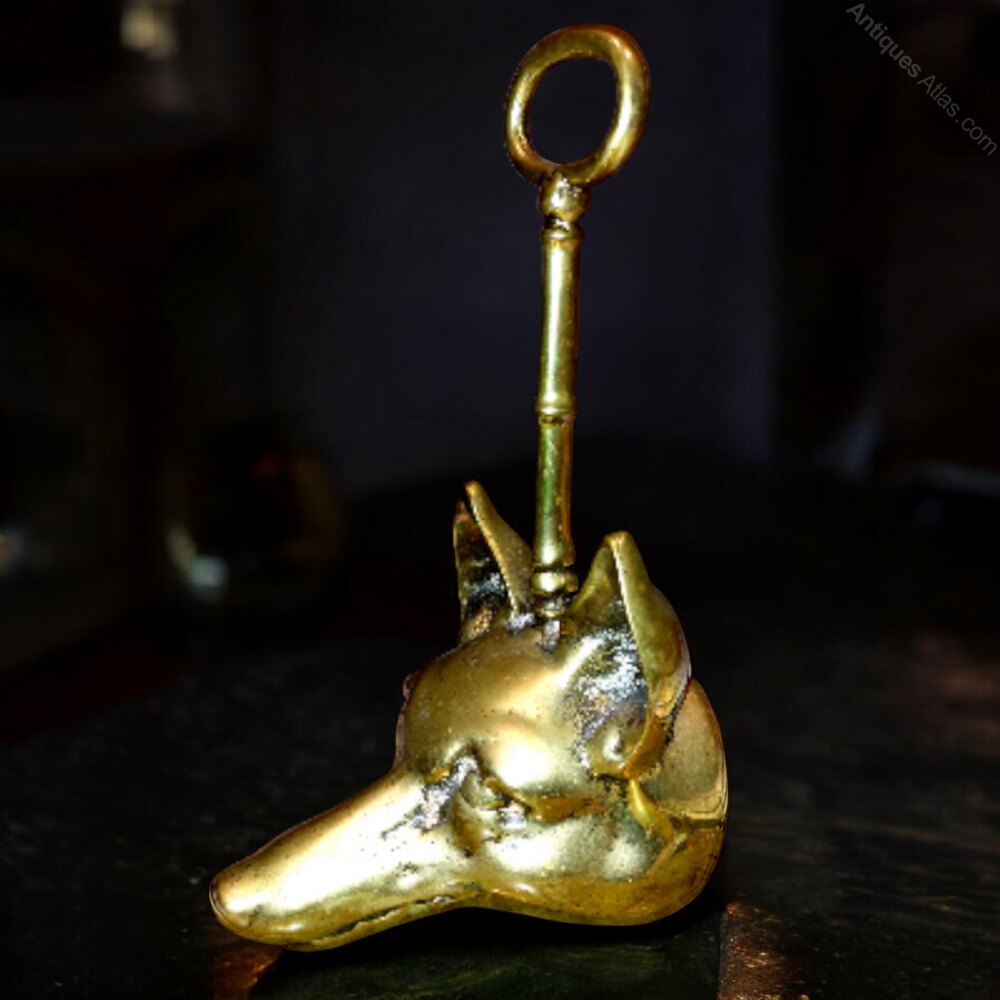 An Antique Victorian fox head doorstop. English in origin Country House door porter dating to the late 19th century c.1880. Unusually with a shorter handle than most but with a large heavy charming head. Weighing 3.6 kilos. Retaining its original finish and patina. 11" tall x 5" wide x 6 1/2" deep. Very prominent snout with large ears showing great character.