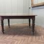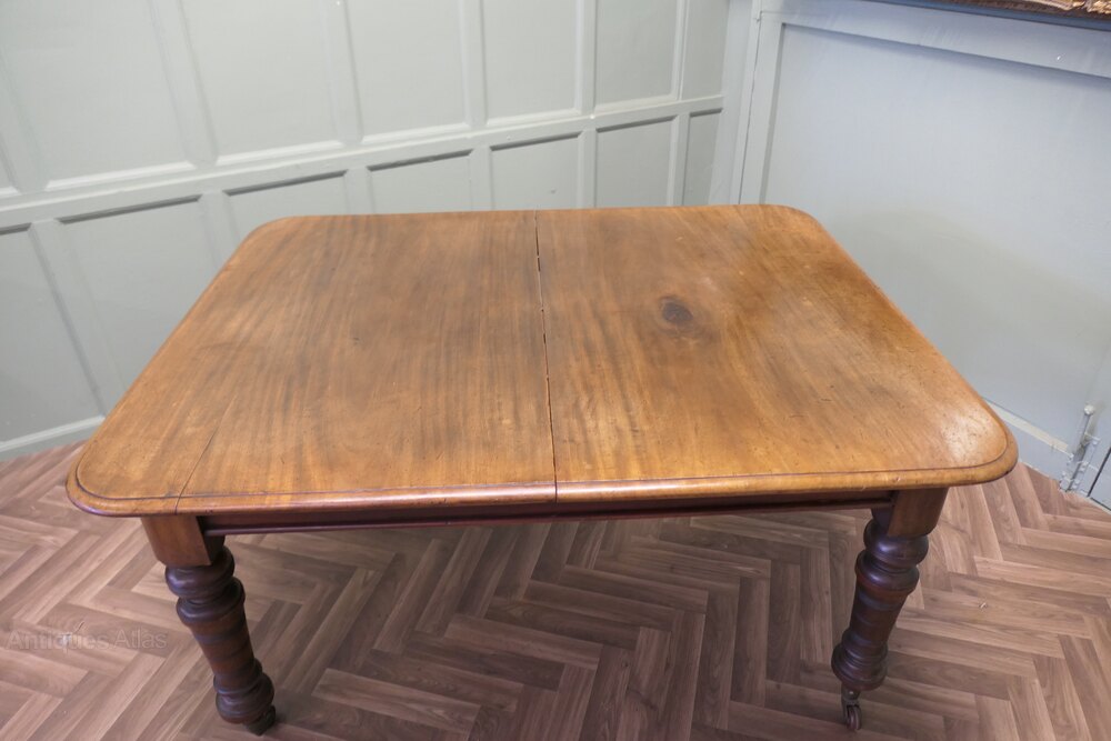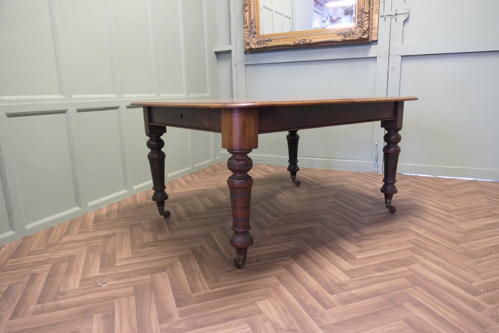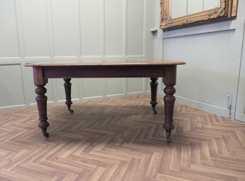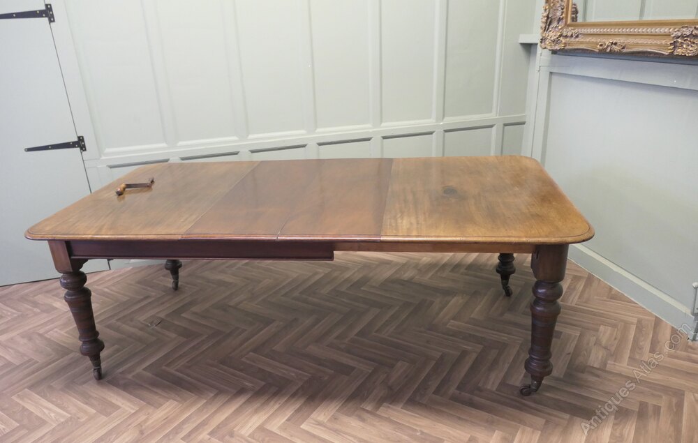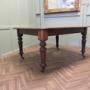 The Wind Out Table is a well known Victorian Invention, it extends the table by means of a winding mechanism which is operated with its own handle, the table opens in the centre, you insert the leaf and voilà you have a nice big family size table. This is the sturdiest form of extending table you will find