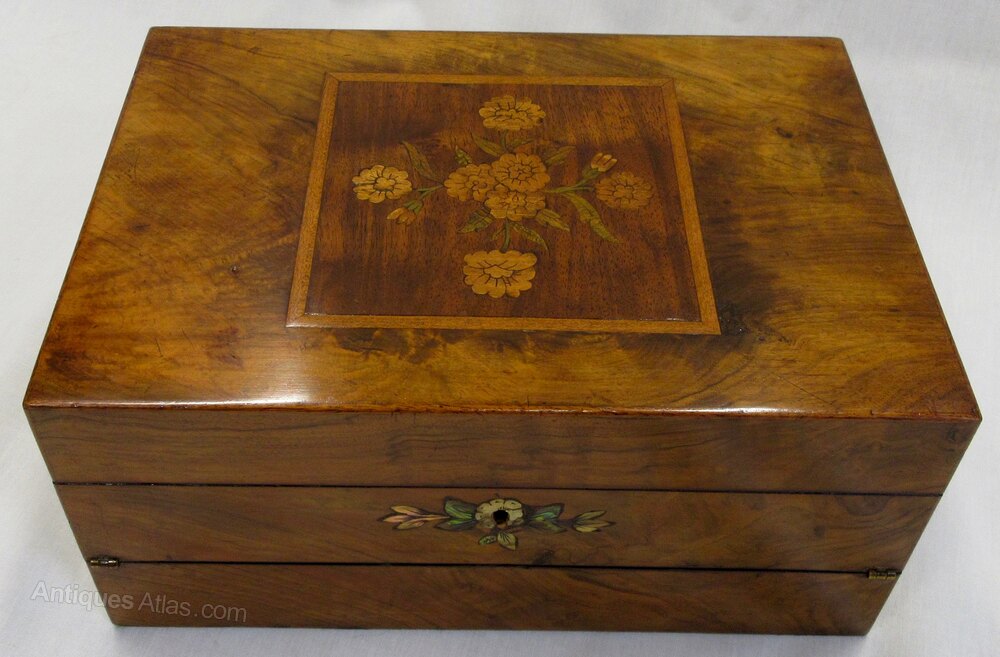 Antique Victorian Rosewood Inlaid Writing Box