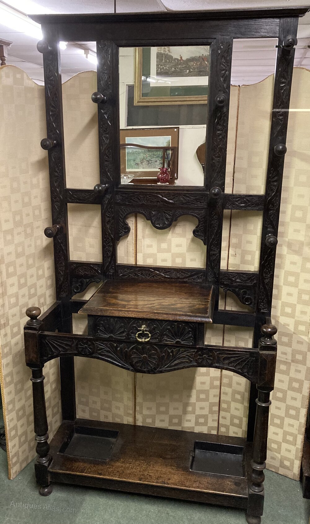 no-46-1880 Victorian oak carved hall-stand with glove box in very good condition