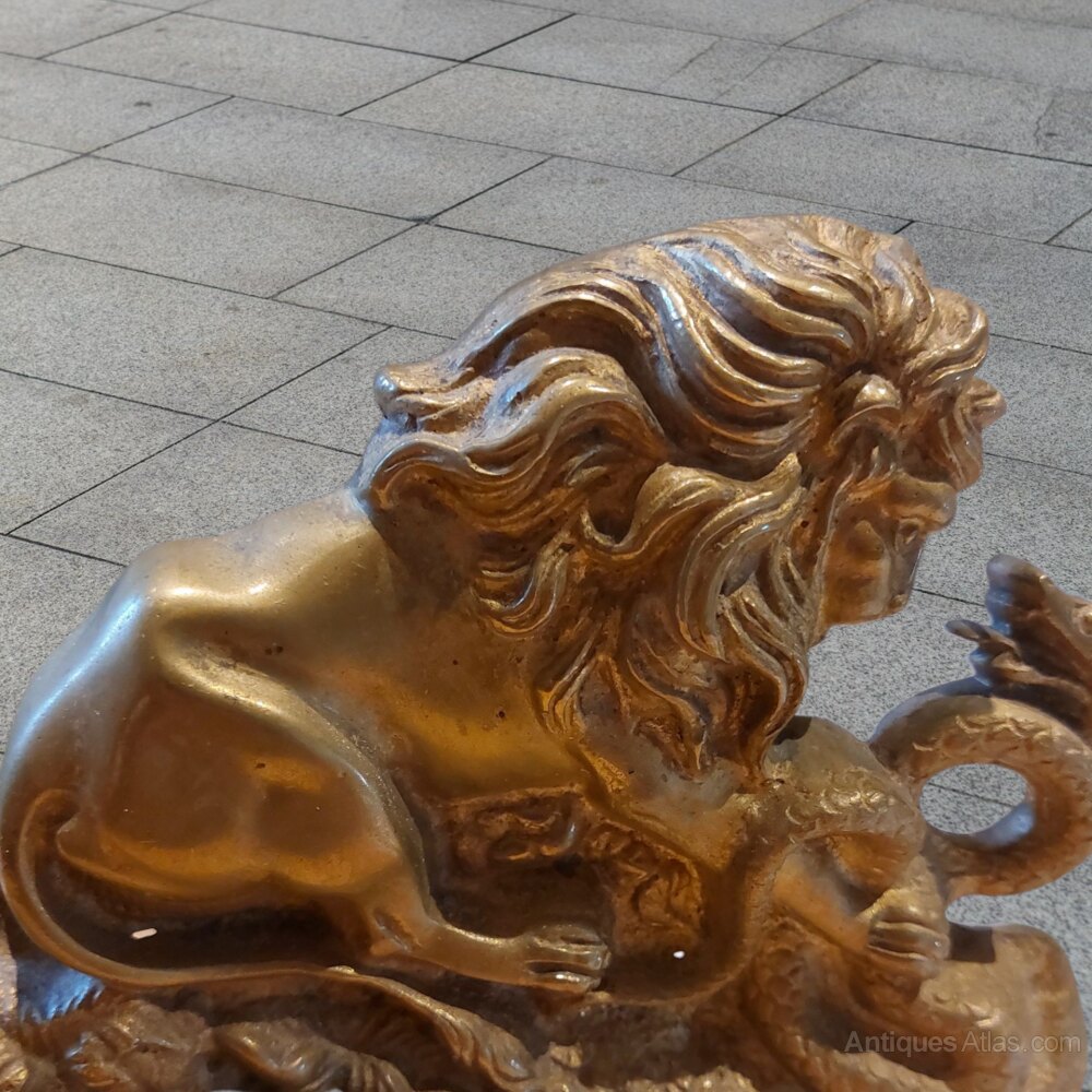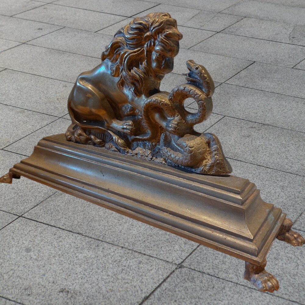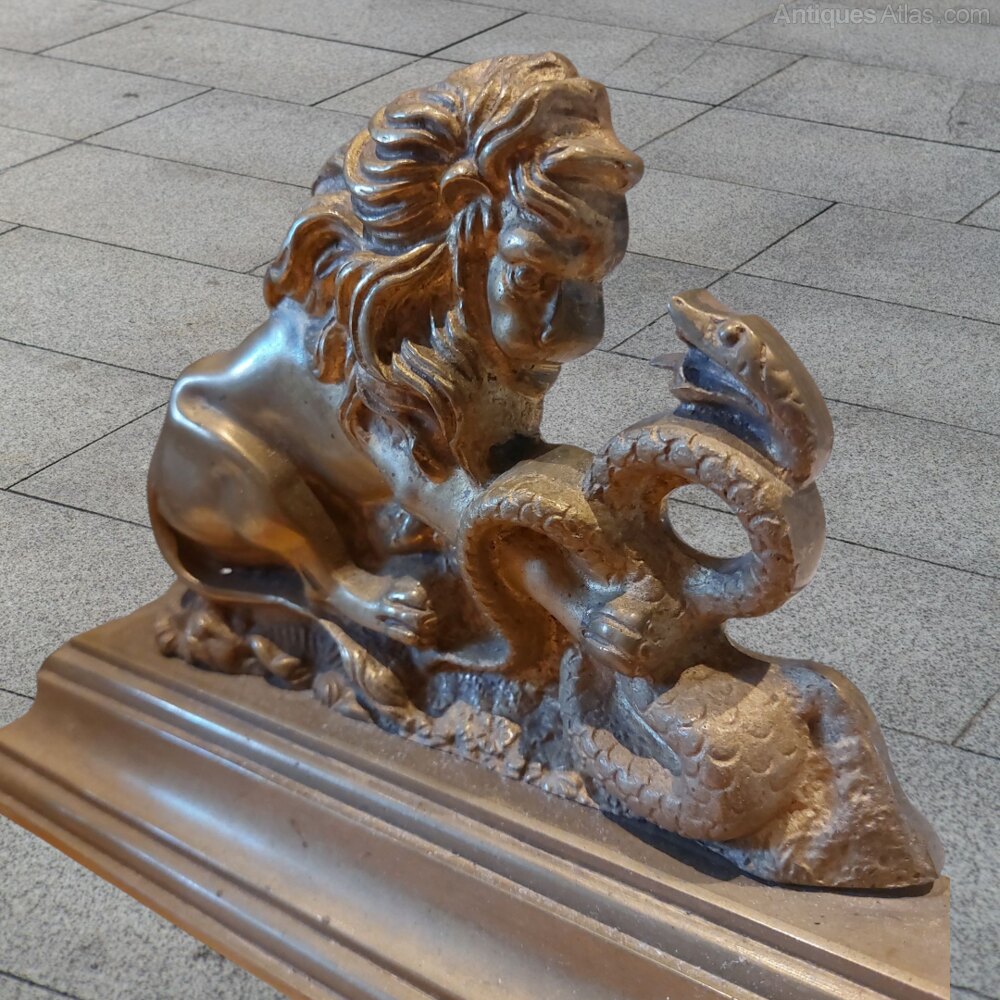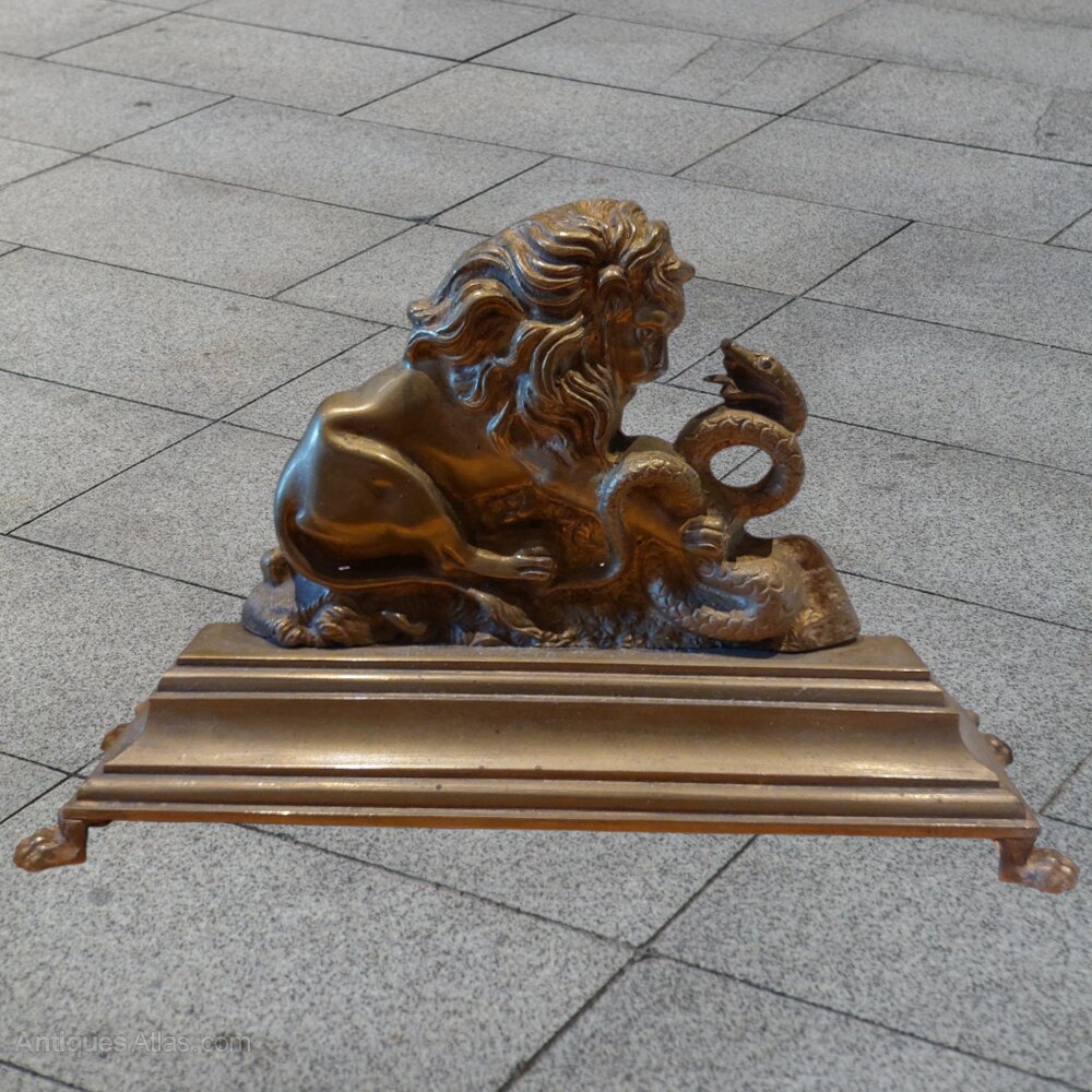 A very good English Victorian quality cast brass Lion and Serpent on stepped base door stop or door porter. The very well cast lion and serpent mounted on a stepped base which stands on four cast brass lions feet. Lovely colour and unpolished. (can be polished if required). 12" wide x 7" tall x 3 1/2" deep. Weighs 1.3 kilos.