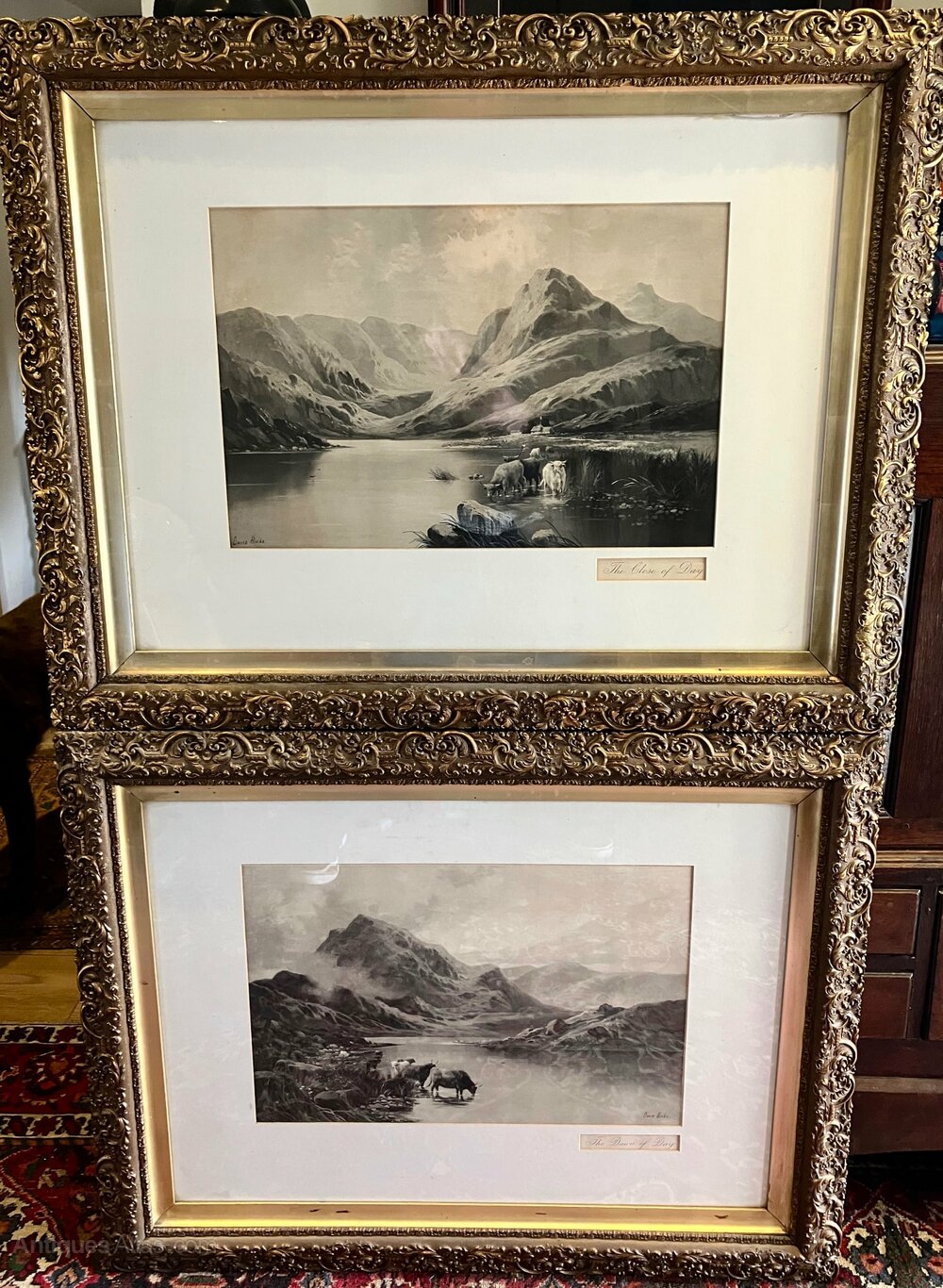Large Pair of Antique Scottish Prints of Highland Scenes
