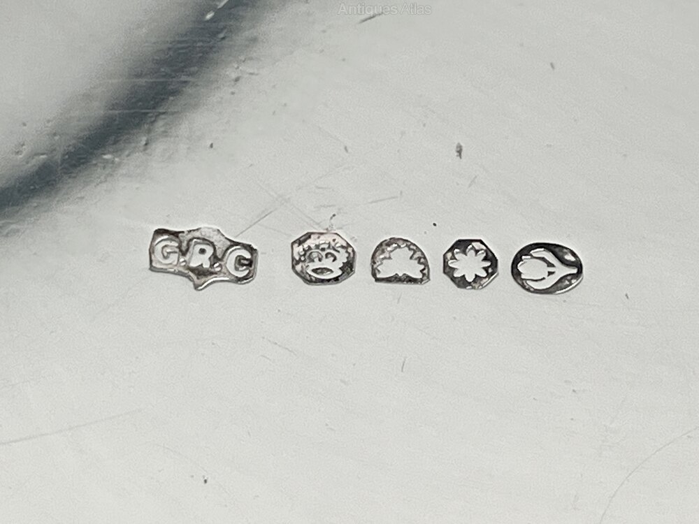 The underside of the base is stamped G.R.C along with a crown and three floral symbols, which are the trademarks of George R. Collis & Co.